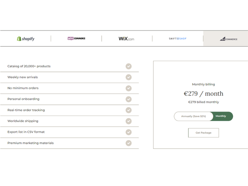 • Đăng ký dịch vụ: Bao gồm gói hàng tháng (279 EUR/ tháng) và gói hàng năm (1.770 EUR/ năm). Khi đăng ký dịch vụ, bạn sẽ có quyền truy cập vào toàn bộ danh mục hơn 28.000 sản phẩm từ 200 + thương hiệu cao cấp, cùng tích hợp nền tảng nền tảng và hỗ trợ khách hàng qua email,…