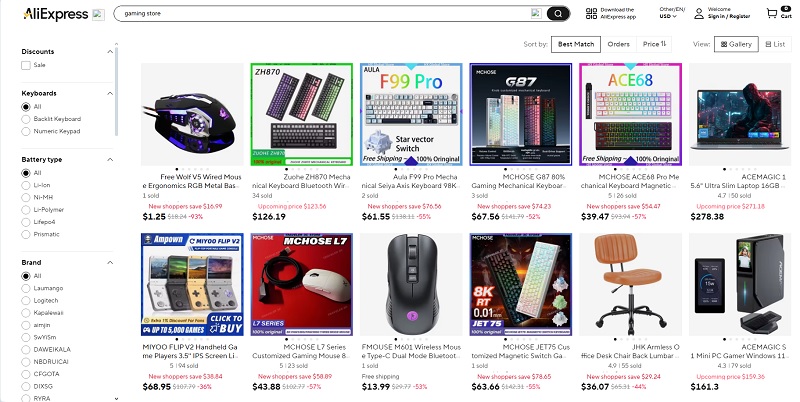 Banggood là một nền tảng thương mại điện tử lớn của Trung Quốc, chuyên cung cấp sản phẩm với mức giá cạnh tranh. Với danh mục hàng ngàn sản phẩm liên quan đến gaming, từ bàn phím cơ, chuột gaming, tai nghe đến kính thực tế ảo, Banggood cho phép người bán dropshipping tiếp cận nguồn hàng phong phú mà không cần nhập kho.