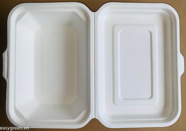 600ml single-compartment sugarcane bagasse takeaway containers manufactured in Vietnam by Easy Green, designed for ready-to-eat meals with strong resistance to liquids and oil/grease, suitable for hot food up to 100°C and microwave heating; size 186×130×57mm, packed 500 pcs per export carton, ideal for restaurants, QSR chains, supermarkets, and food-to-go brands, with reliable bulk supply for international importers and distributors (FDA and Vietnam food safety standards via SGS).