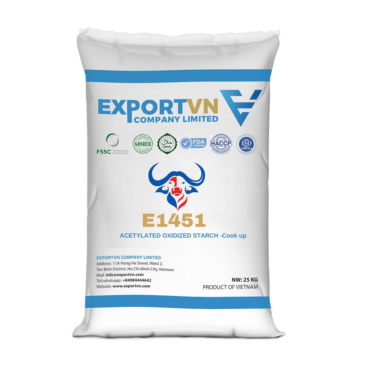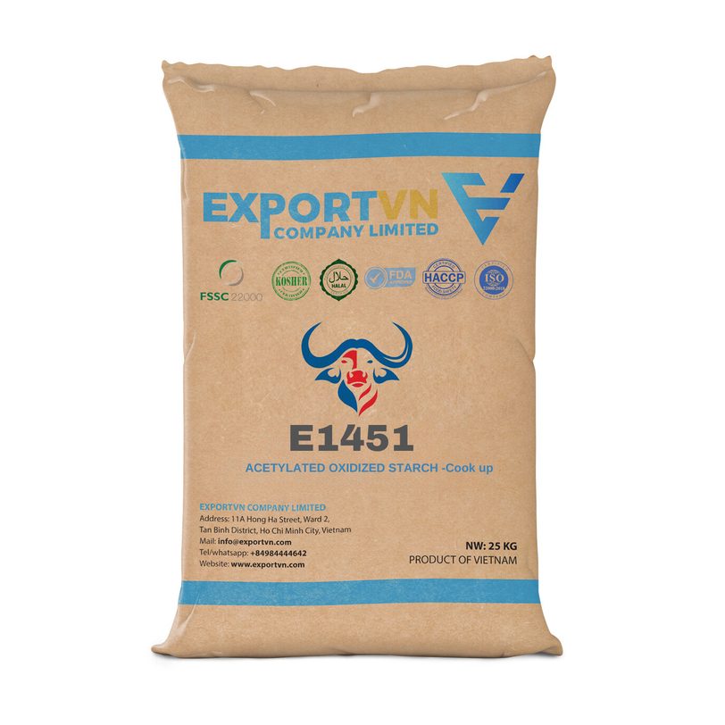 Acetylated Oxidized Starch E1451 is a food-grade modified starch used as a thickener and stabilizer for processed food applications. Produced in Vietnam for industrial and export supply, it is acetylated and oxidized to enhance heat tolerance, texture, and processing stability, making it suitable for sauces, soups, and other formulated foods that require consistent viscosity and smooth mouthfeel. The product supports B2B sourcing needs for manufacturers and ingredient distributors seeking reliable functional starch performance.