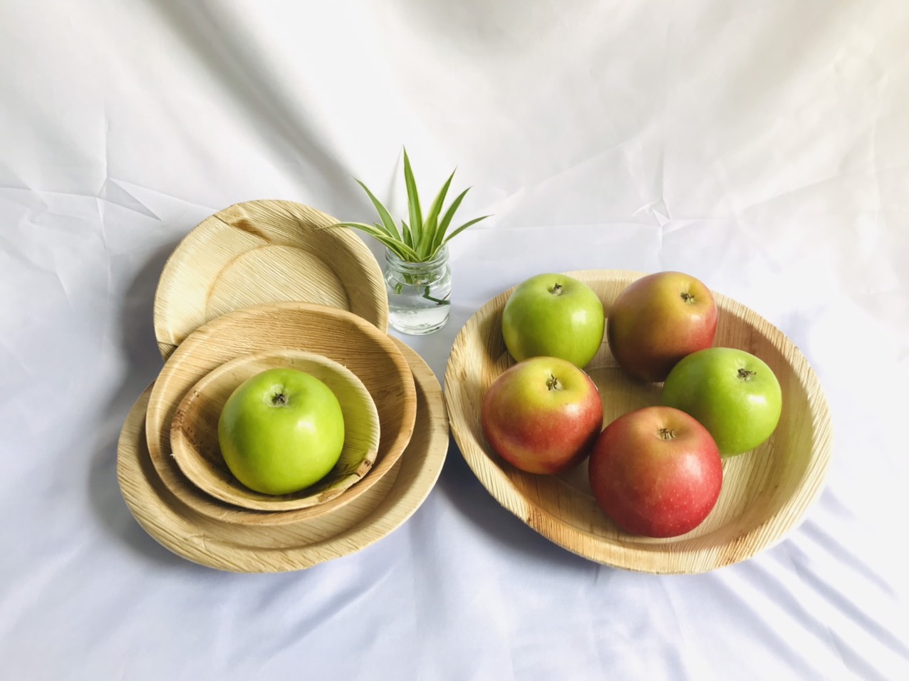 Natural Areca Palm Leaf Bowls Made In Vietnam for foodservice and hospitality buyers sourcing compostable serveware; produced from 100% dried areca palm leaves with practical bowl depth for snacks, salads, and takeaway portions, supporting eco-driven import programs.