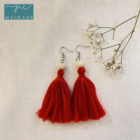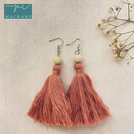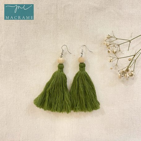 Bell-Shape Boho Macrame Knot Earrings With Jade Detail