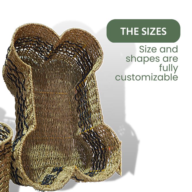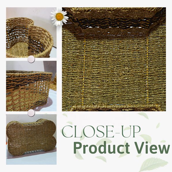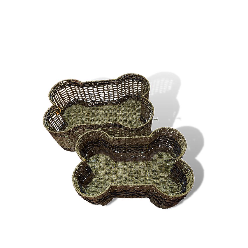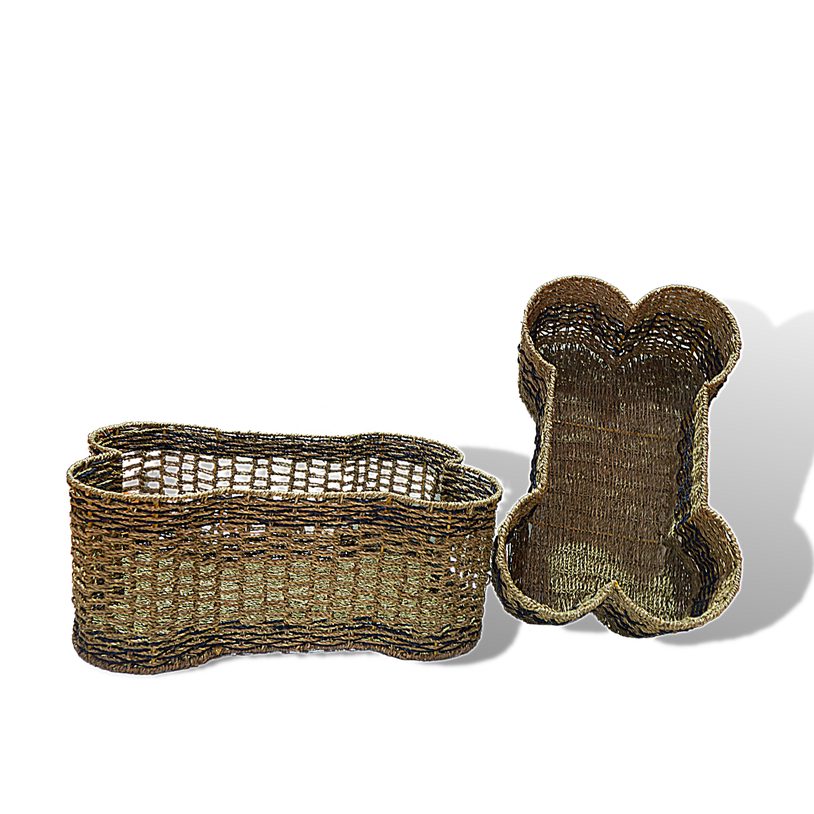 Made in Vietnam, this bone-shaped storage basket is handwoven from natural water hyacinth over a reinforced metal frame to deliver a sturdy, durable organizer for pet-focused retail and home storage ranges. Designed for holding dry dog treats, toys, and small pet accessories, the distinctive bone silhouette also works as a decorative accent that appeals to pet owners. A strong fit for wholesale and export programs seeking eco-friendly, stocked storage items with practical everyday use.