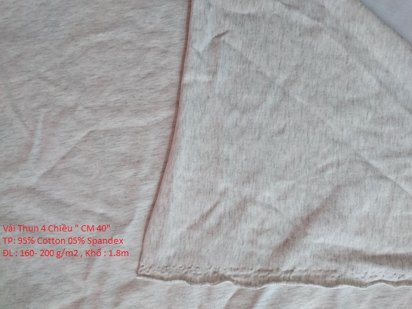 CM40 Four-Way Stretch Cotton Fabric is a soft and breathable knitted fabric made from 95% cotton and 5% spandex, providing excellent four-way stretch, comfort, and shape recovery; with a fabric width of 180 cm and a weight range of 160–200 gsm, this fabric is well-suited for T-shirts, activewear, casual wear, and everyday apparel, and is available in custom colors and specifications to meet the sourcing needs of international brands, buyers, and garment manufacturers.