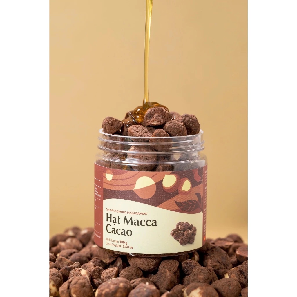 Cocoa-Coated Macadamia Snack Nuts (Size Max >24 mm) are sourced and processed in Vietnam (Dak Nong) with a rich cocoa coating and a premium large-nut grade, formulated with 88% macadamia nuts plus cocoa powder, sugar, and a light salt balance, then packed in compact 100 g boxes for convenient retail display, gifting, and sampling programs; ideal for importers, wholesalers, and snack distributors seeking a differentiated flavored macadamia SKU—contact us for export quotation, lead time, and private label/OEM discussions.
