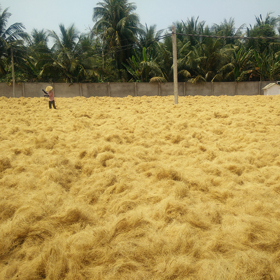 Made in Vietnam, this coconut coir fiber yarn is processed from natural coir and supplied in golden-to-brown tones with consistent fiber length for industrial applications. It is widely used as a natural raw material for coir mattresses and padding products, and its strong absorbency in water makes it suitable as an eco-friendly sorbent for oil spill response and cleaning oily residues in coastal or marine environments. Available in compressed bales for efficient bulk handling and export programs.