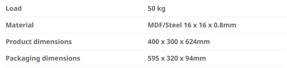 Product dimension: 400 x 300 x 624mm