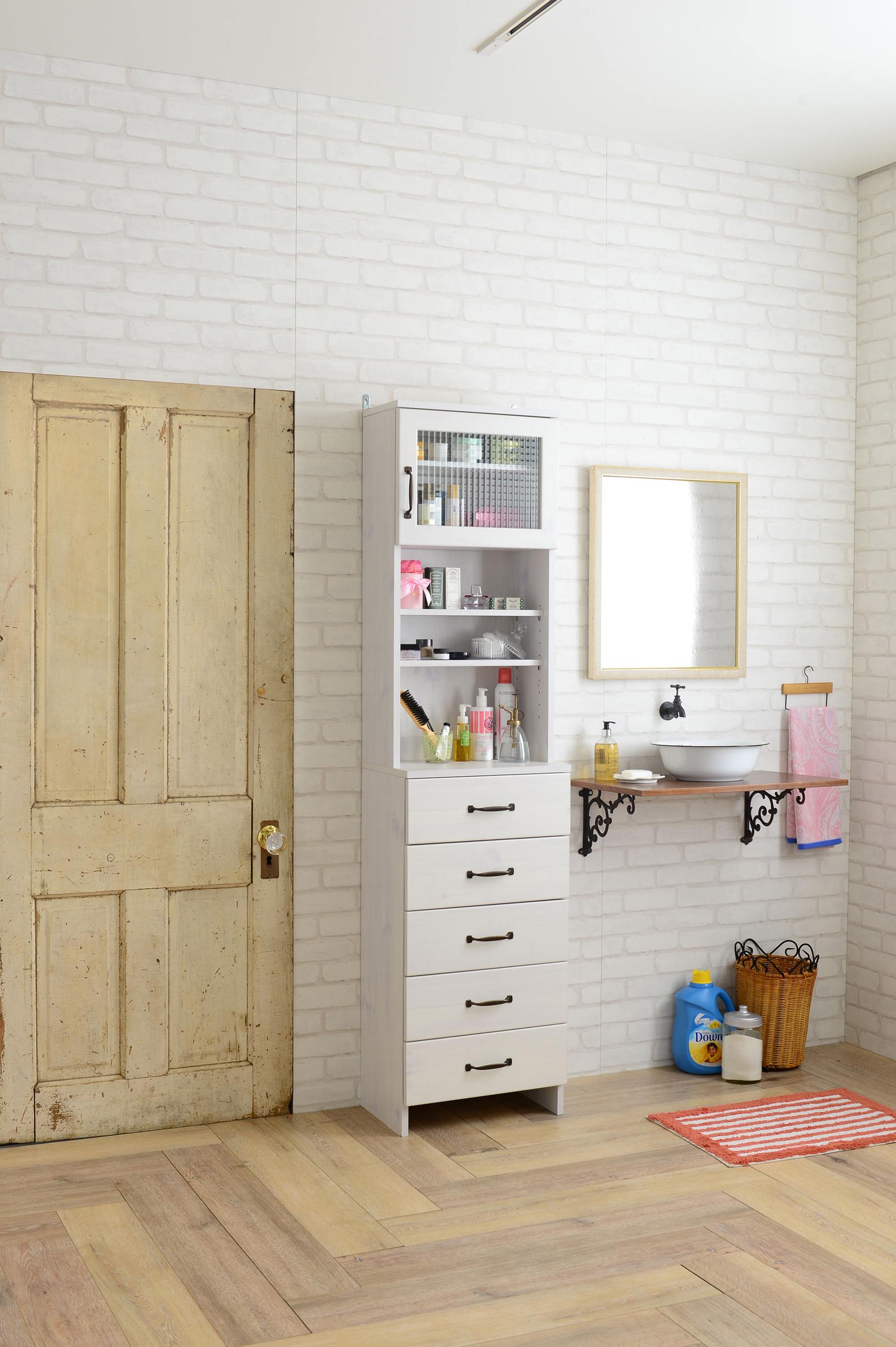 Country-Style Louver Door Cabinet With Glass Panel