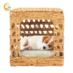 Cube Woven Hyacinth Cat Hideaway Bed (Natural, Removable Cushion, Floor-Standing, Indoor Use)