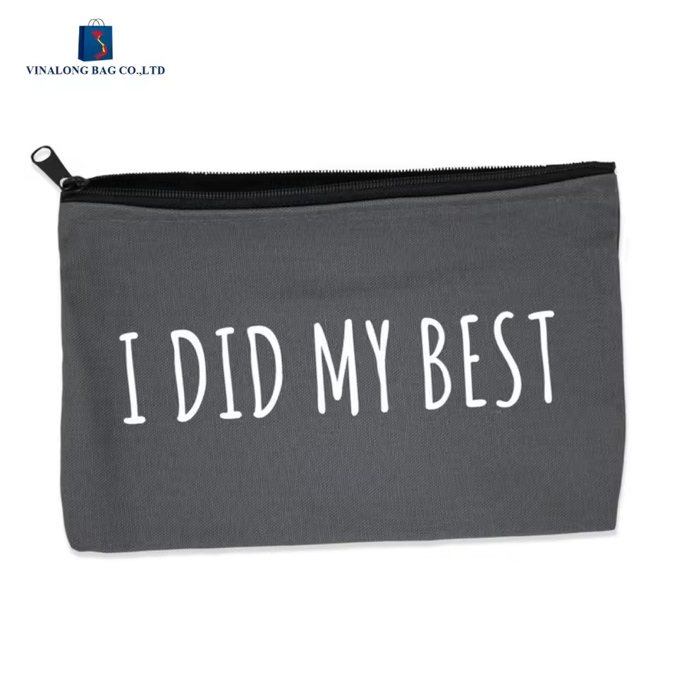 This custom canvas zipper pouch is designed for wholesale sourcing—ideal for brands and importers needing reliable, lightweight packaging for travel and everyday storage. Manufactured in Vietnam, it supports custom colors, sizes, and artwork printing to match your campaign, retail, or promotional requirements. Suitable for organizing cosmetics, toiletries, and small travel essentials, with easy-to-clean, reusable performance for long-term use.