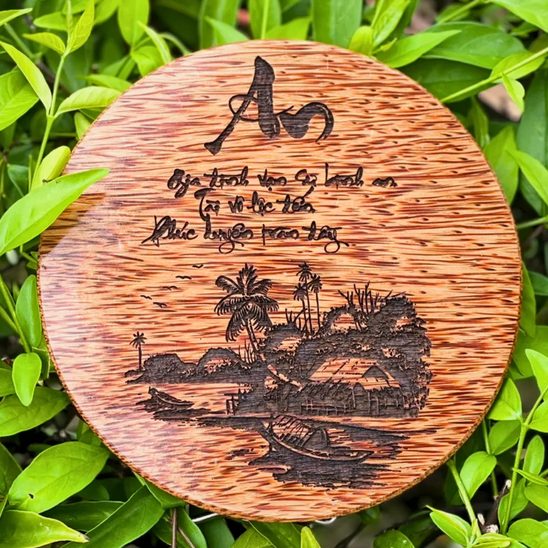 Crafted in Vietnam from natural coconut wood, this handmade round desk décor features precision carving and optional custom engraving (name/logo/message) for distinctive office styling, corporate souvenirs, and gift programs—ideal for importers and B2B buyers sourcing eco-friendly tabletop décor with OEM logo customization available from 500 pieces.