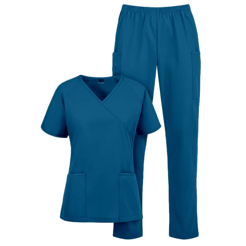 Manufactured in Hanoi, Vietnam, this custom stretch women’s nursing scrub set is designed for hospital uniform programs that prioritize comfort, mobility, and a clean professional look. The set includes a V-neck short-sleeve top with functional pockets and matching pants for daily clinical work, supporting easy movement during long shifts. Produced with woven fabric (230 gsm) and specified as breathable and comfortable, it is suitable for bulk procurement and international buyers sourcing Vietnam-made medical scrubs for institutional supply or distribution. The supplier provides OEM service and ODM capability to support customization of sizes, colors, and branding requirements.