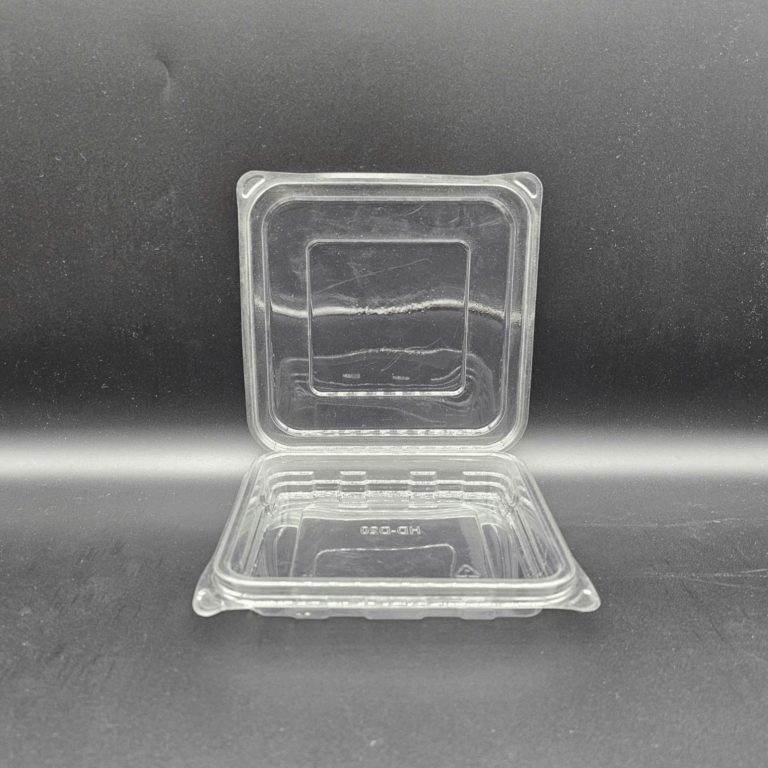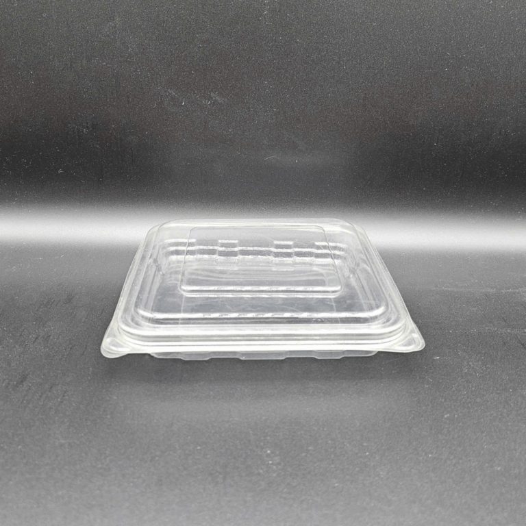 Deli D20 is a clear, deep square PET container designed for flan, layered jelly, mini cakes, cut fruit, small salads, toppings, and side dishes, offering higher side walls than smaller deli sizes for slightly larger portions while keeping a compact footprint; the high-transparency body highlights layers and garnishes for chilled displays and online sales, and the attached hinged lid closes with a firm snap-lock to help reduce leaks and protect against dust and odors during storage or delivery; rounded corners and a flat top support secure stacking to save space in chillers, shelves, and transport trays, making it a practical choice for cafés, bakeries, milk-tea brands, snack shops, and take-away programs; size 32.5 × 16.5 × 2.3 cm; packing 460 pcs/carton; material PET; color clear; made in Vietnam and suitable for export sourcing.