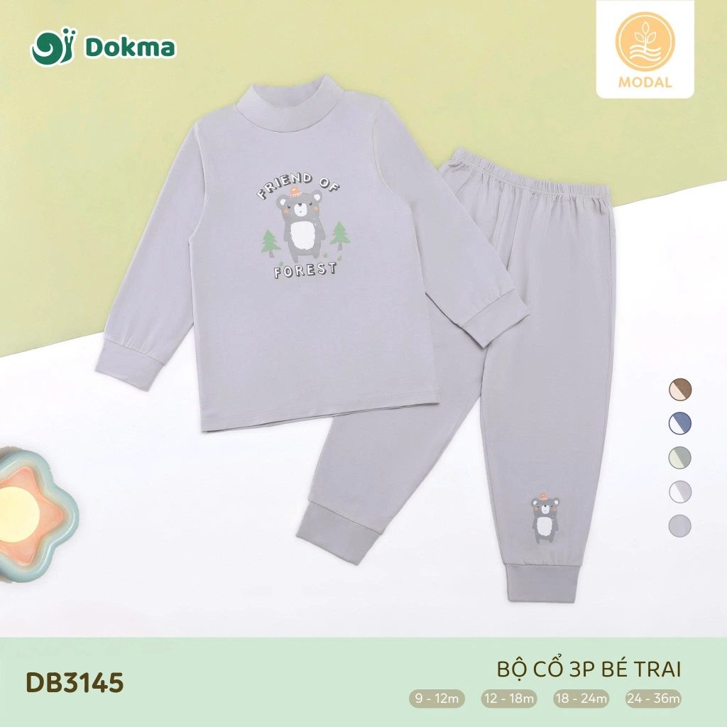 Dokma Boys’ 3P Collar Modal Set (Code: DB3145) is a comfortable two-piece outfit designed for infants and toddlers, crafted from premium modal fabric that is exceptionally soft, breathable, and gentle on sensitive skin. Featuring a long-sleeve top with a 3P collar for light warmth and cuffed pants for a neat, secure fit, this set offers ease of movement and all-day comfort for daily wear. Finished with cute animal prints and soft pastel tones, and available in brown beige, grey, white grey, white blue, and blue, in sizes 9–36 months, this Vietnam-made product is a reliable option for international buyers sourcing high-quality, skin-friendly baby apparel with strong retail appeal.