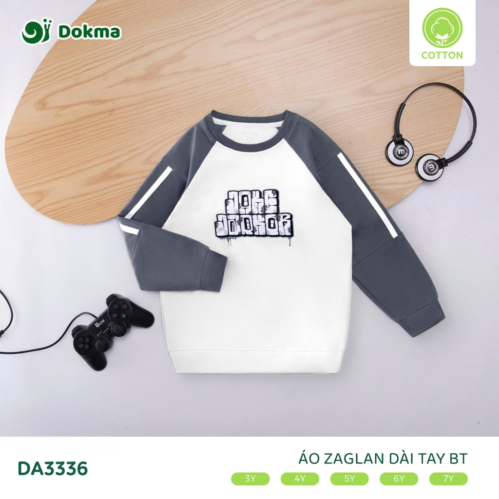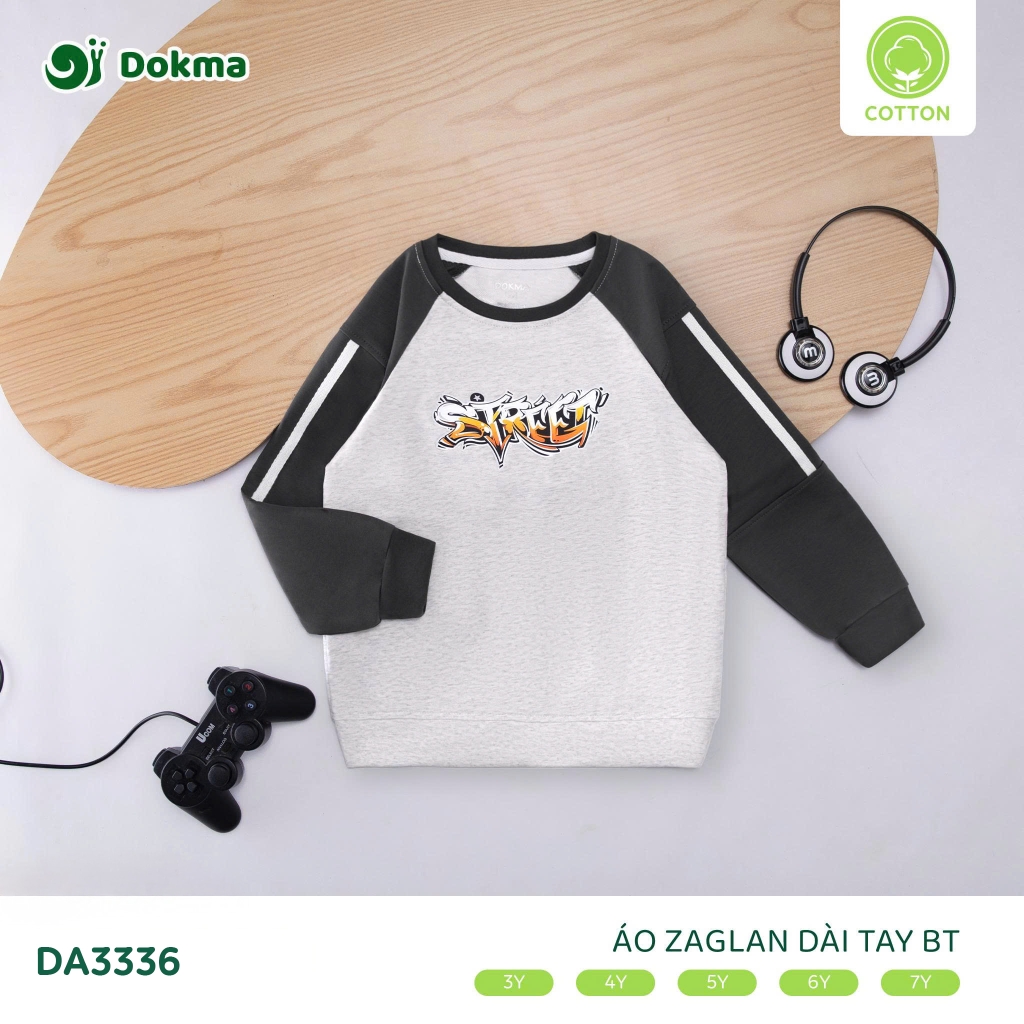 Dokma Boys’ Long-Sleeve Raglan Cotton T-Shirt (Code: DA3336) is designed for everyday comfort and active wear, crafted from soft, breathable cotton fabric that is gentle on children’s skin and offers excellent moisture absorption. Featuring a sporty raglan sleeve design, a neat and comfortable fit, and bold printed graphics, this style delivers a dynamic, youthful look suitable for school, casual outings, and daily activities. Available in white, grey, beige, and charcoal, in sizes 3Y to 7Y, this Vietnam-made product is a practical and appealing option for international buyers sourcing durable, easy-to-style boys’ apparel.