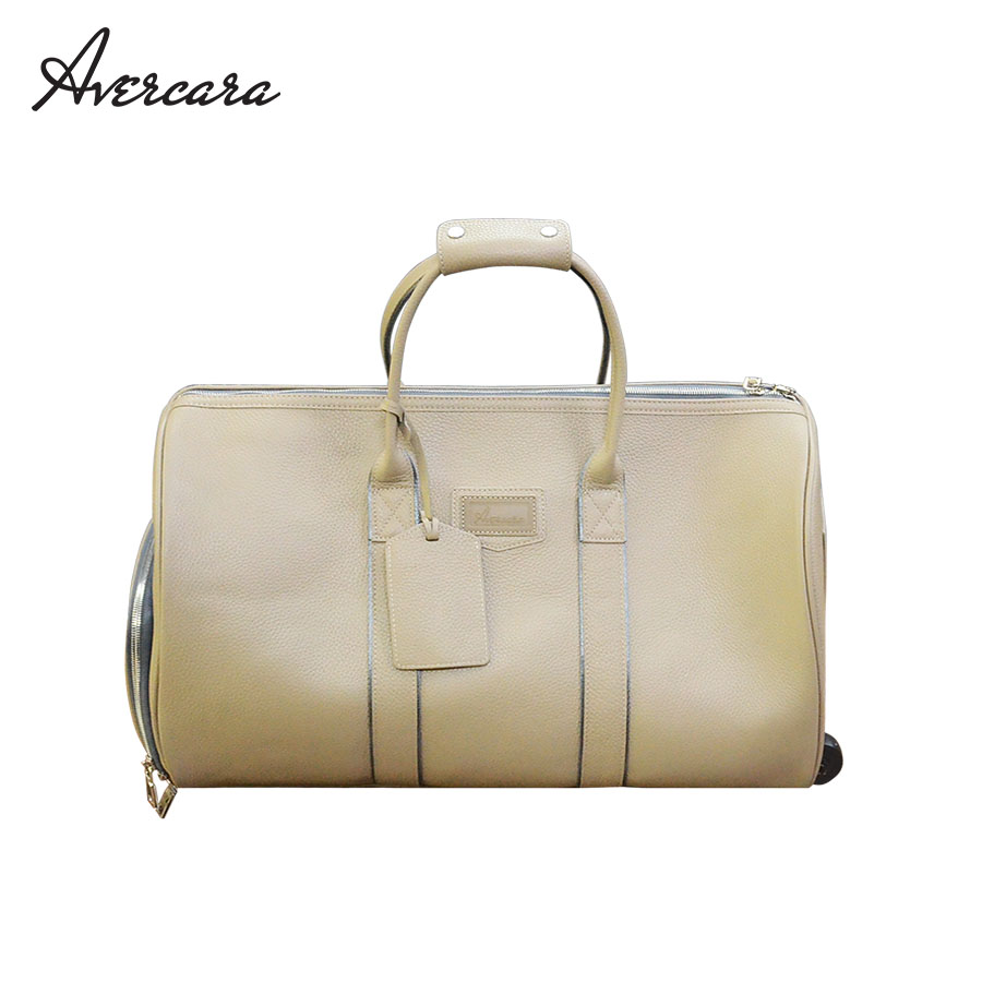 Trolley duffle bag made from milled full-grain cow leather with a double-zip main compartment and premium felt lining to help protect belongings. Includes a dedicated shoe compartment to separate shoes or used items, supporting cleaner organization for short trips, gym, and business travel. Internal pockets help keep documents, a laptop, and personal items arranged, while the pull-handle design reduces carrying strain during transit. Manufactured in Vietnam, with options for customization such as logo, name, or signature for B2B sourcing programs.