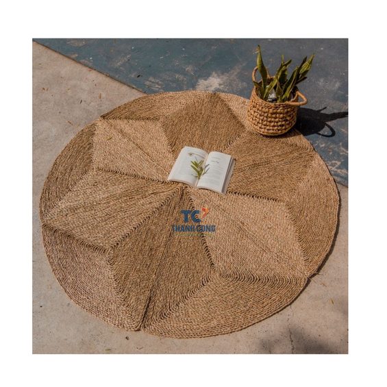 Flower-Shaped Seagrass Rug (Plush Pile, Washable Non-Slip, Solid Color, OEM/ODM) is a natural-fiber indoor rug made from seagrass and water hyacinth, designed to add a soft, organic accent to living rooms and bedrooms. The hand-knotted and braided construction supports a plush pile feel, while washable and non-slip features suit everyday use in multiple home areas. MOQ starts from 50 pcs, packed in carton boxes (master carton or as requested), with OEM/ODM service available, manufactured in Vietnam for export sourcing.