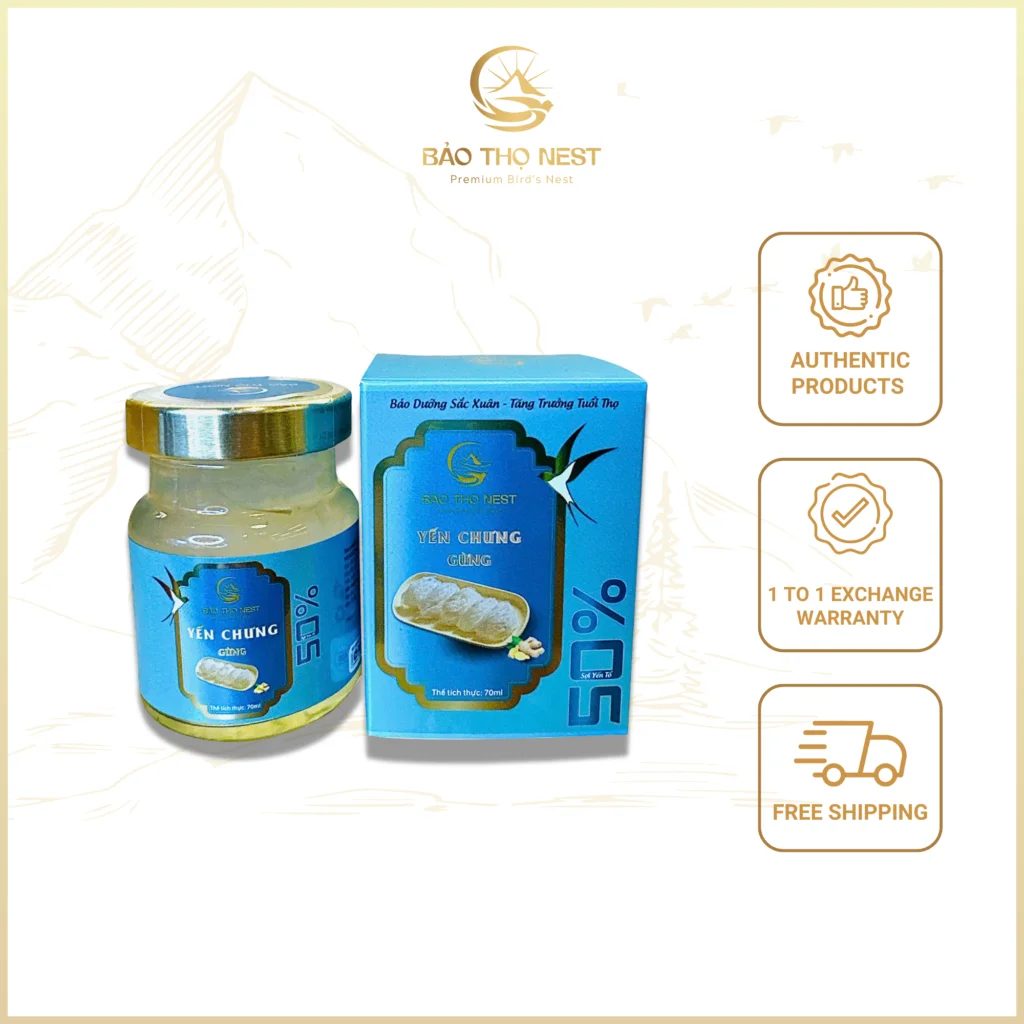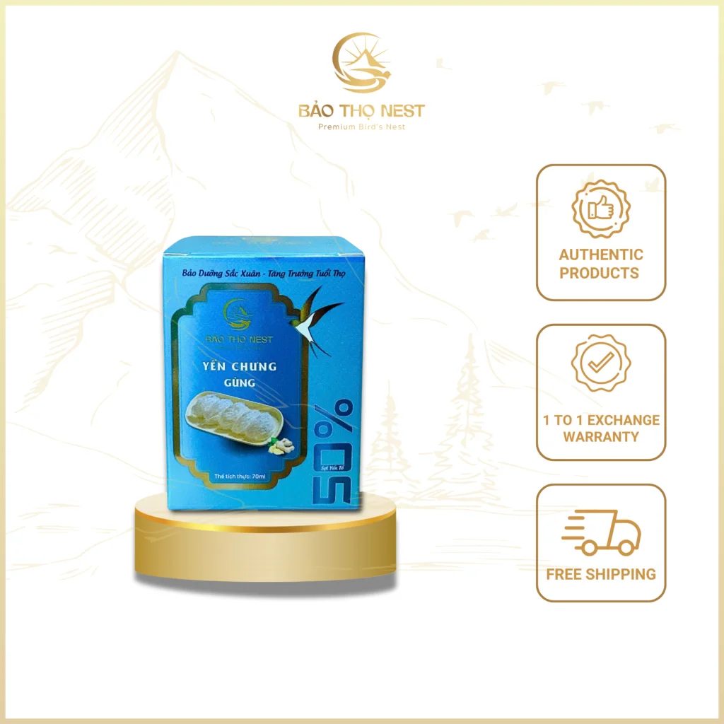 Made in Vietnam (Nha Trang, Khanh Hoa), this ready-to-drink bird’s nest is crafted with fresh bird’s nest strands, rock sugar, and ginger, then sealed in sterilized glass jars to preserve purity and consistent taste; packed 70ml per jar (60 jars per carton; product dimensions 5.5 × 5.5 × 7.5 cm; 12-month shelf life), it is suitable for international importers, distributors, and wellness brands sourcing premium bird’s nest beverages from Vietnam.
