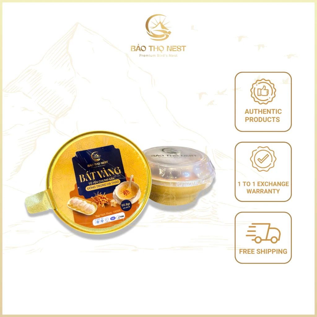 Made in Vietnam (Khanh Hoa, Nha Trang), this premium bird’s nest bowl combines hand-cleaned fresh bird’s nest with cordyceps and rock sugar, enriched with essential vitamins and minerals to support digestive wellness, immunity, and daily vitality; packed 140g per heat-resistant bowl with protective film (36 bowls per carton; product dimensions 10.6 × 10.6 × 6.3 cm; 24-month shelf life), it is suitable for international importers, distributors, and gift-channel buyers sourcing high-value functional bird’s nest products from Vietnam.