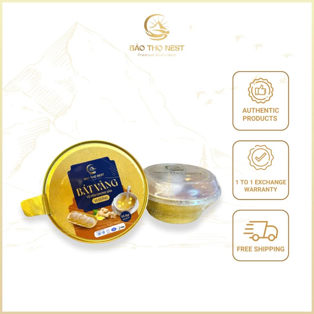 Made in Vietnam (Khanh Hoa, Nha Trang), this premium bird’s nest bowl combines hand-cleaned fresh bird’s nest strands with ginger and rock sugar, enriched with essential vitamins and minerals to support digestion, immunity, and daily vitality; packed 140g per heat-resistant bowl with an outer protective seal (36 bowls per carton; product dimensions 10.6 × 10.6 × 6.3 cm; 24-month shelf life), it is ideal for international importers, distributors, and gift-channel buyers sourcing value-added bird’s nest products from Vietnam.