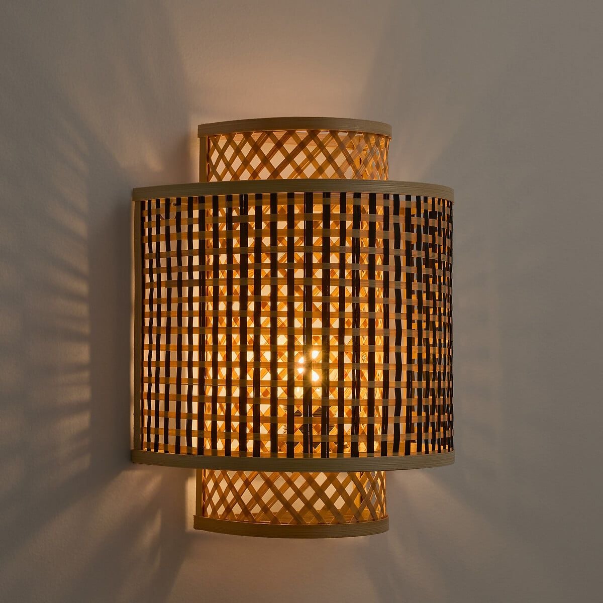 A woven wall lamp made in Vietnam, crafted from natural bamboo and rattan to create a warm, soft glow and distinctive light-and-shadow effect for boho, modern, or rustic interiors; ideal for bedrooms, hallways, living spaces, and hospitality projects, this export-ready piece offers a natural aesthetic and reliable craftsmanship for international buyers sourcing sustainable lighting décor.
