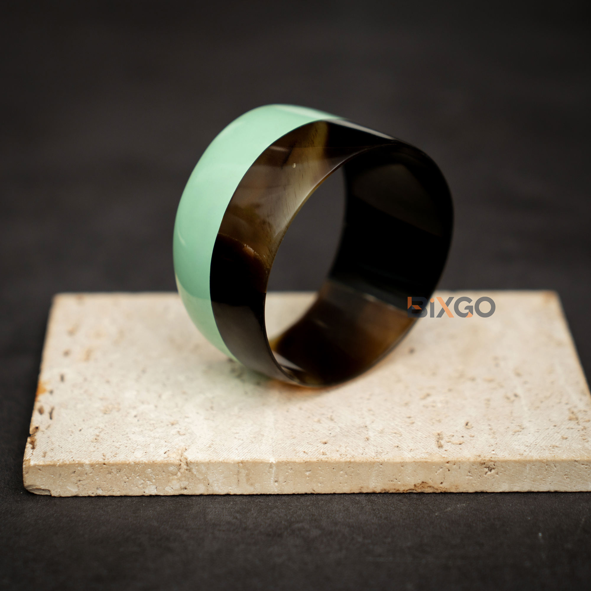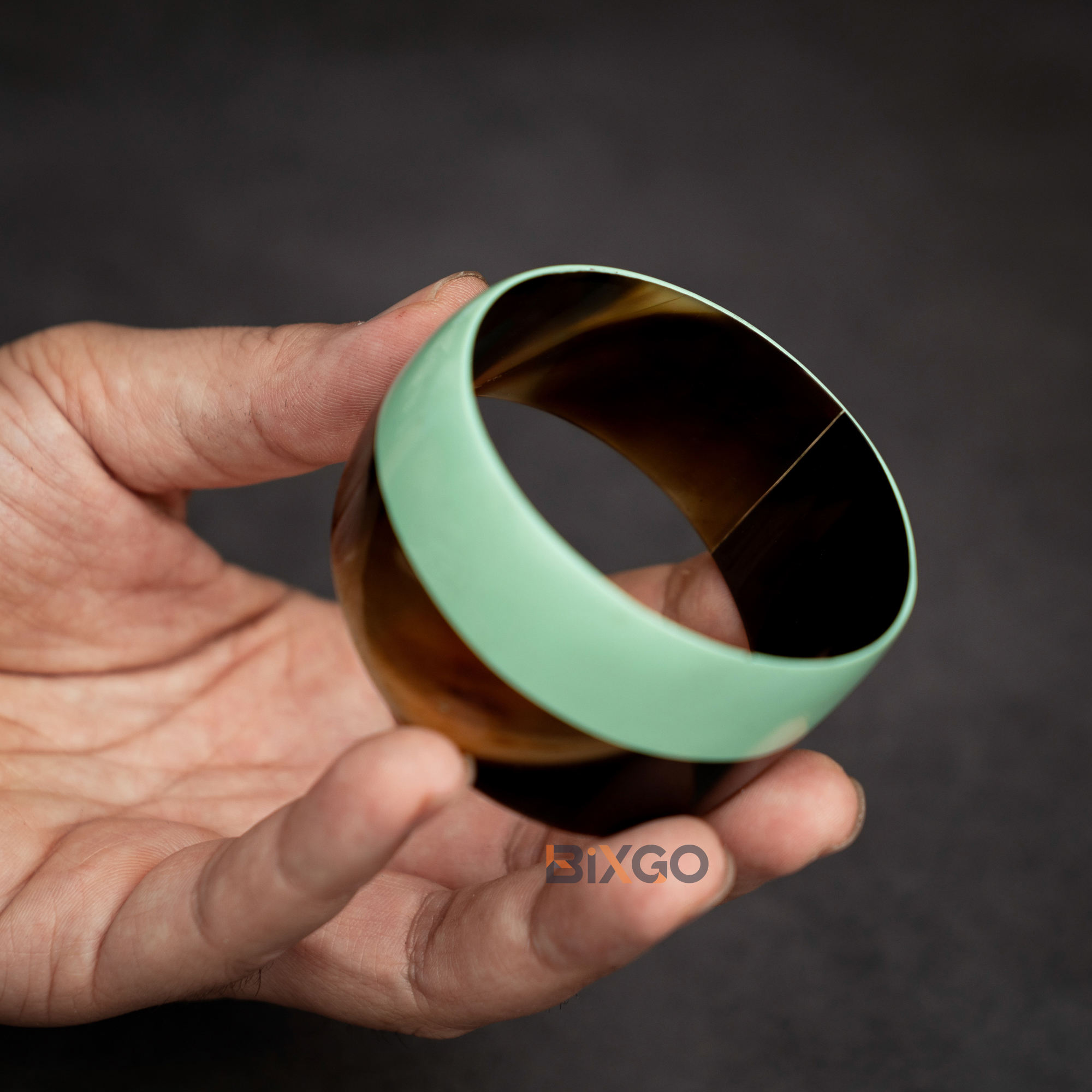 Made in Hanoi, Vietnam, this handcrafted buffalo horn cuff bracelet features an evenly rounded C-shape with a distinctive vertical half-painted jade green finish for a modern, premium look. With an eco-friendly aesthetic and unique craftsmanship, it is suitable for importers, boutiques, and gift retailers sourcing “Made in Vietnam” horn jewelry, with standard or custom sizing available for brand collections.