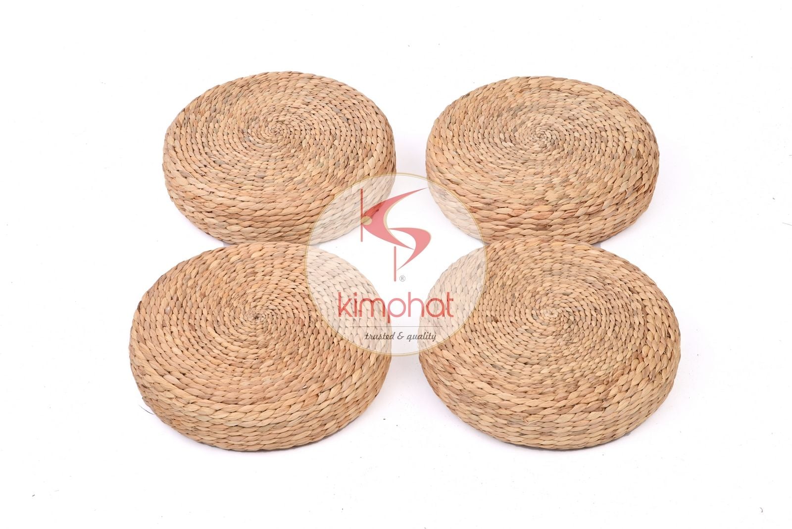 Handcrafted in Vietnam from natural water hyacinth (eco-friendly), this thick, round seat cushion offers firm yet comfortable support for praying, tea gatherings, picnics, and relaxed floor seating, featuring a dense spiral weave that adds a warm, natural look to hospitality and lifestyle spaces; sized at 40cm x 40cm x 10cmH, it is well-suited for international buyers and importers sourcing sustainable, handmade seating accessories for export.