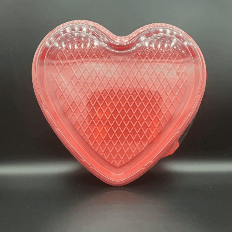 HeartBox is a large heart-shaped container designed for premium sushi and sashimi sets serving 2–4 people, combining a vivid red base with a crystal-clear, tight-fitting PET lid to showcase the full presentation while protecting delicate toppings; the textured anti-slip base helps keep pieces and garnishes in place, while the raised rim and firm snap-lock closure reduce shifting during transport, and the sturdy yet lightweight construction stacks cleanly for supermarket shelves and deli counters; a flat label area supports branding, barcodes, or tamper-evident sealing, making it ideal for festive combos, gift sets, and party take-away (Valentine’s Day, Women’s Day, birthdays, and corporate events); lid 23.8 × 23.8 × 3.55 cm, base 23.4 × 23.4 × 2.5 cm; material: PET (lid/base); packing: 70 pcs/pack; made in Vietnam and suitable for export sourcing.