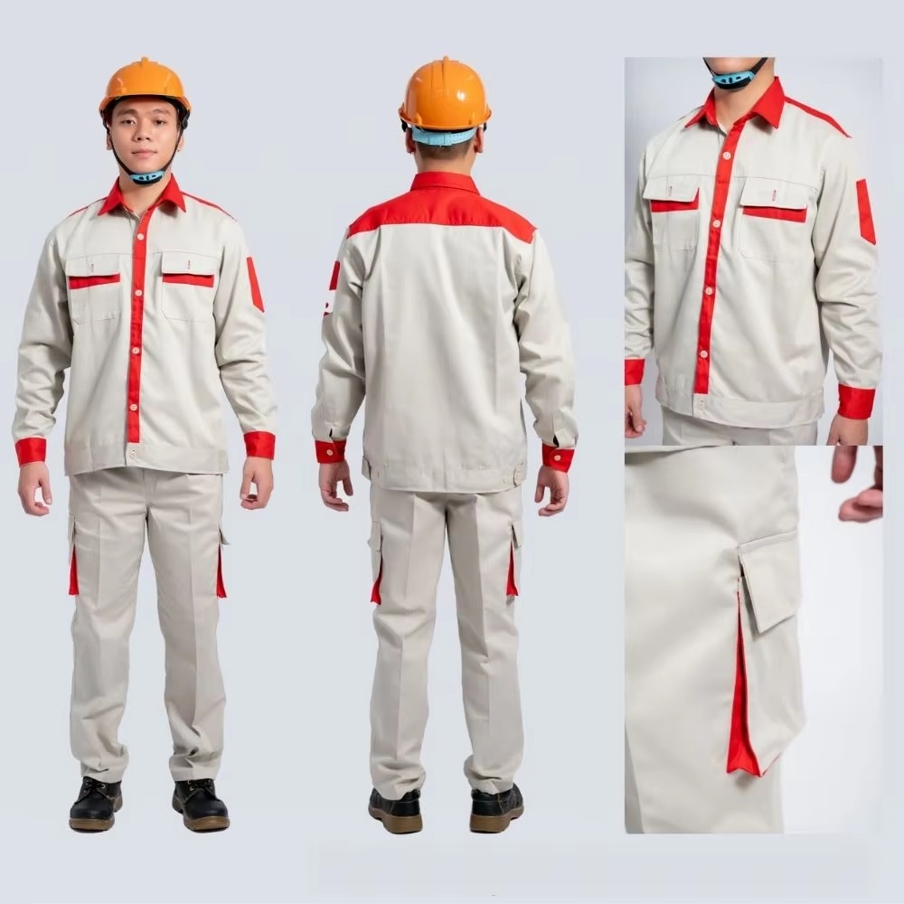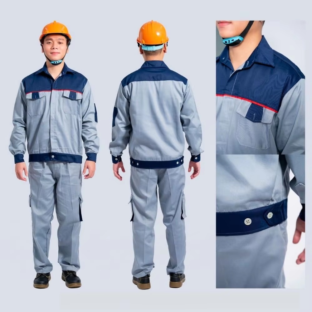 Manufactured in Hanoi, Vietnam, this industrial workwear safety uniform set is built for consistent protection and comfort in factories, construction sites, and hazardous working environments. Using Kaki Protect / Kaki 65 fabric (35% cotton, 65% polyester), it delivers a durable, moderately thick feel with breathable wear, reduced shrinkage, and good color fastness to support frequent use. Designed for bulk procurement and uniform programs, the set is suitable for international buyers sourcing reliable Vietnam-made labor protection clothing with OEM production support.