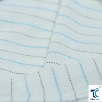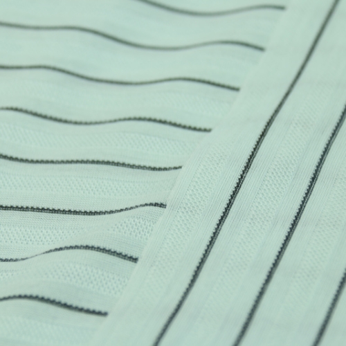 Interlock knit fabric made from 100% polyester, featuring integrated colored stripe yarn for a clean and consistent stripe effect, supplied in 1.8m width with a weight of 180gsm, offering good dimensional stability and durability, suitable for T-shirts, sportswear, uniforms, and large-scale garment sourcing for international buyers and apparel manufacturers.