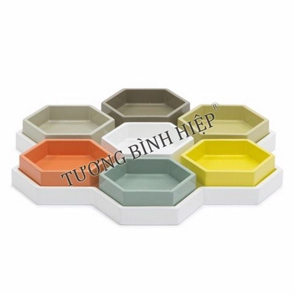 A Vietnam-manufactured lacquer serving tray set designed for festive candy/snack presentation and premium corporate gifting. Built from CARB P2 MDF board and arranged with multiple removable inner trays for flexible serving, suitable for export sourcing and made-to-order OEM/ODM requirements.