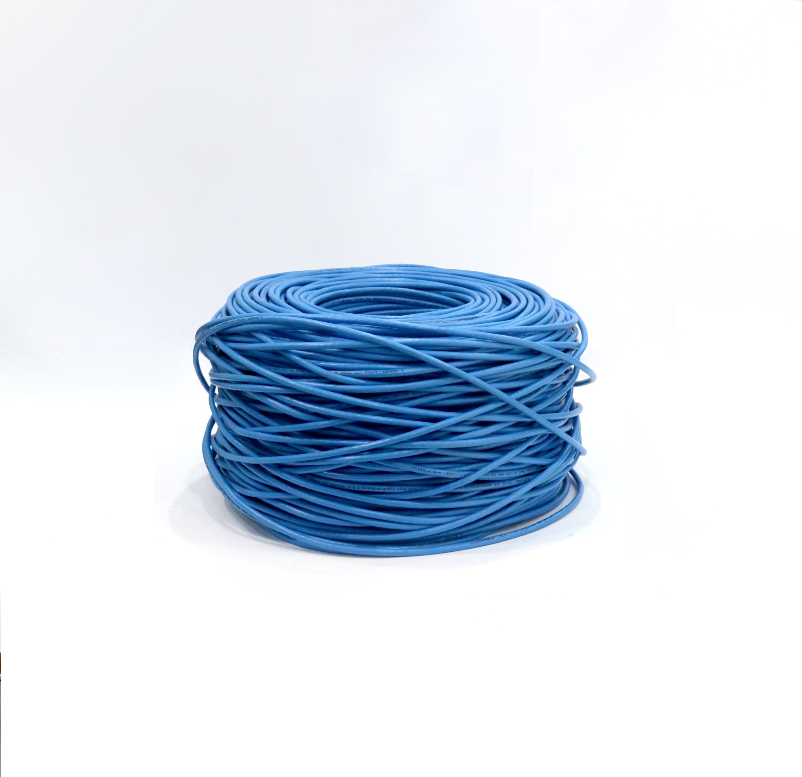 The LEAD CABLE CAT.6E UTP 25AWG Network Cable is designed for high-performance structured cabling systems, featuring 4-pair 25AWG conductors made from 99.99% pure LS Korean copper and SEI (Thailand) materials, internationally compliant twist rates to minimize crosstalk and signal loss, and a durable virgin PVC outer jacket in blue, supplied in standard 305-meter rolls to meet the requirements of commercial projects, bulk purchasing, and international sourcing buyers.