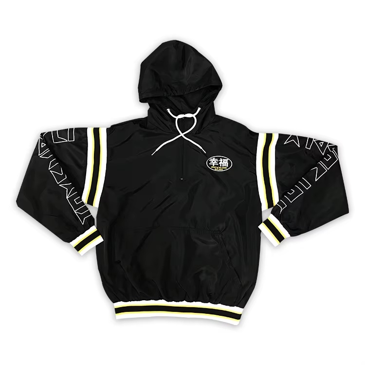 Manufactured in Vietnam for international buyers sourcing customizable sportswear and streetwear outerwear, this men’s pullover windbreaker is designed for bulk orders and private label programs. The jacket features a hooded, regular-length silhouette with a practical front pocket and 1/4 zipper, suitable for team uniforms, promotional merchandise, and active lifestyle collections. It supports multiple decoration methods—including embroidery, sublimation printing, and heat-transfer printing—enabling custom logos, graphics, and colorways, with reinforced stitching on seams and hems to enhance durability. Performance-focused options include breathable comfort and quick-dry wear, with additional feature options such as waterproof and anti-bacterial functionality.