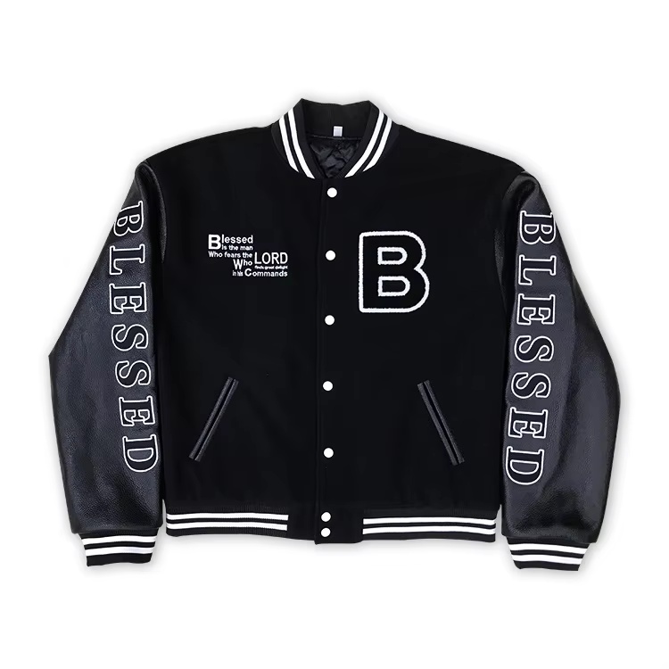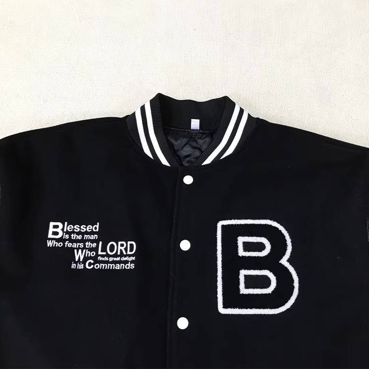 Manufactured in Vietnam for international buyers sourcing customizable outerwear, this men’s varsity/letterman-style jacket is designed for private label programs, college apparel, and promotional teamwear. The jacket features a knitted construction with cotton filling and supports custom logo and artwork placement using embroidery and heat-transfer printing, enabling brand-ready finishes for bulk orders. Offered with customized colors, labels, and sizing, it also highlights functional options such as breathable wear, waterproof capability, anti-bacterial performance, and reversible styling. Needle detection and seamless fusing are included to support consistent quality control for export supply.