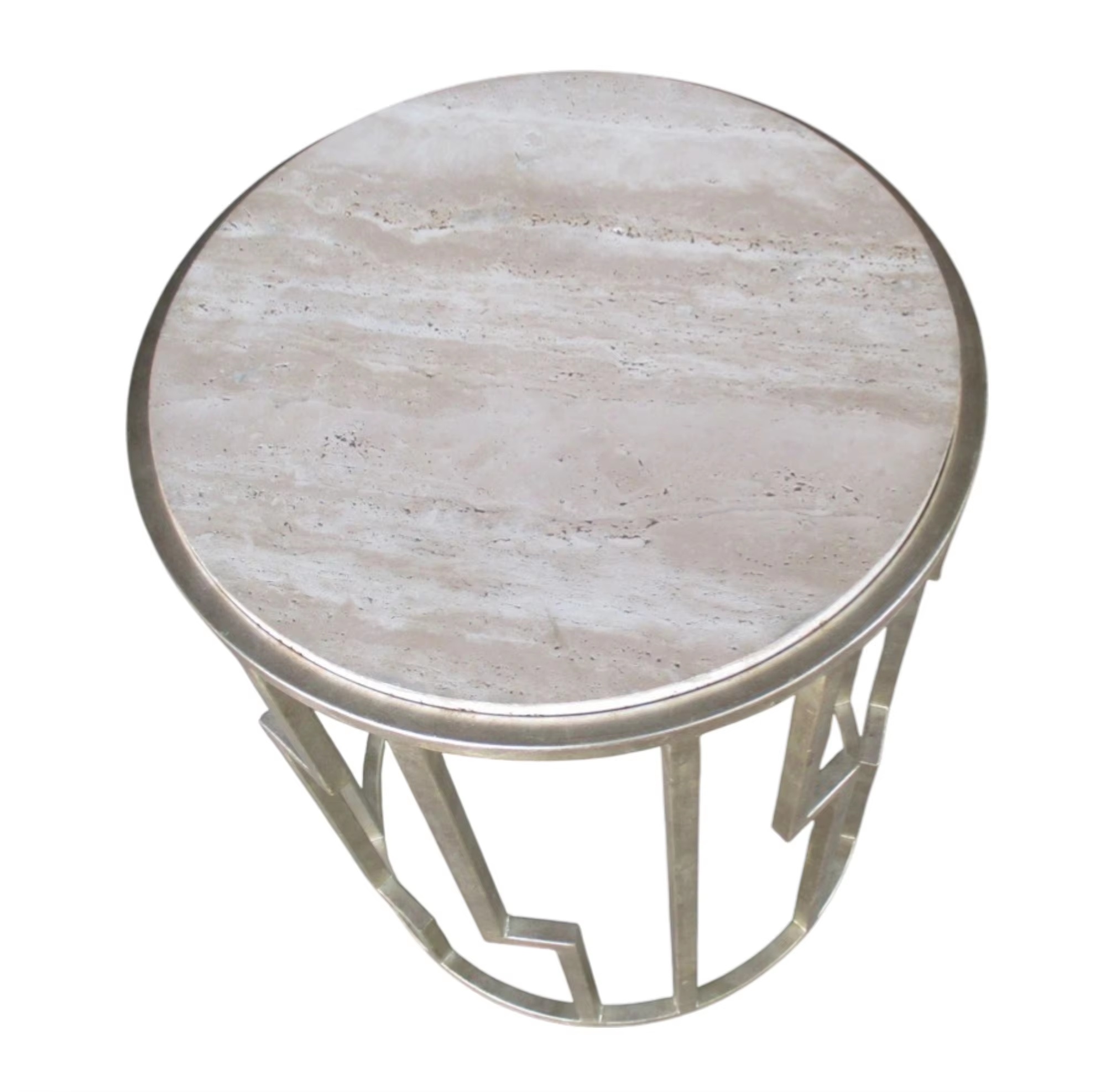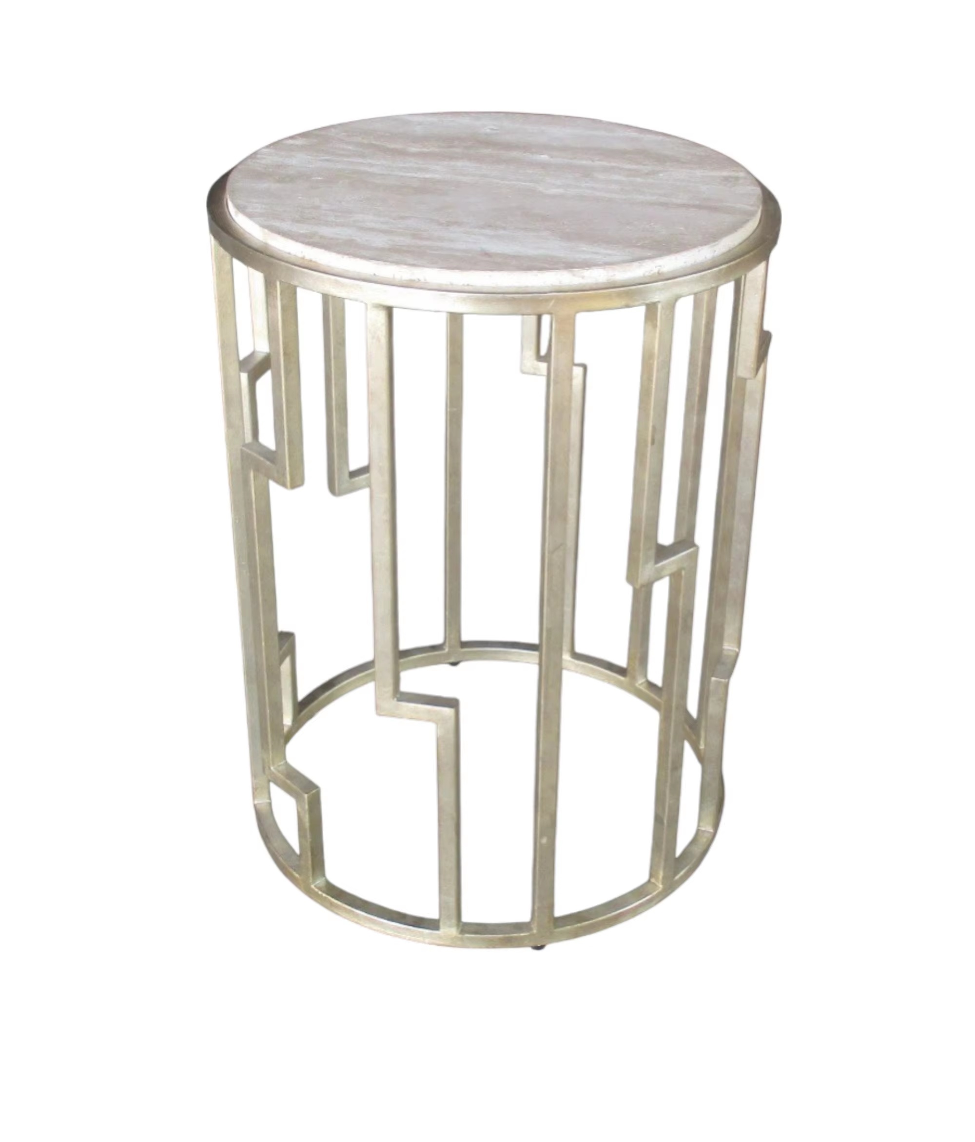 A contemporary round end table featuring a marble tabletop paired with a durable metal frame in a geometric, architectural style—ideal as a sofa-side or bedside accent piece. Manufactured in Vietnam, this table is designed for stable daily use and easy cleaning in living rooms, bedrooms, hotels, apartments, and office lounge spaces, making it a strong option for international buyers sourcing modern marble-top side tables for wholesale and export.