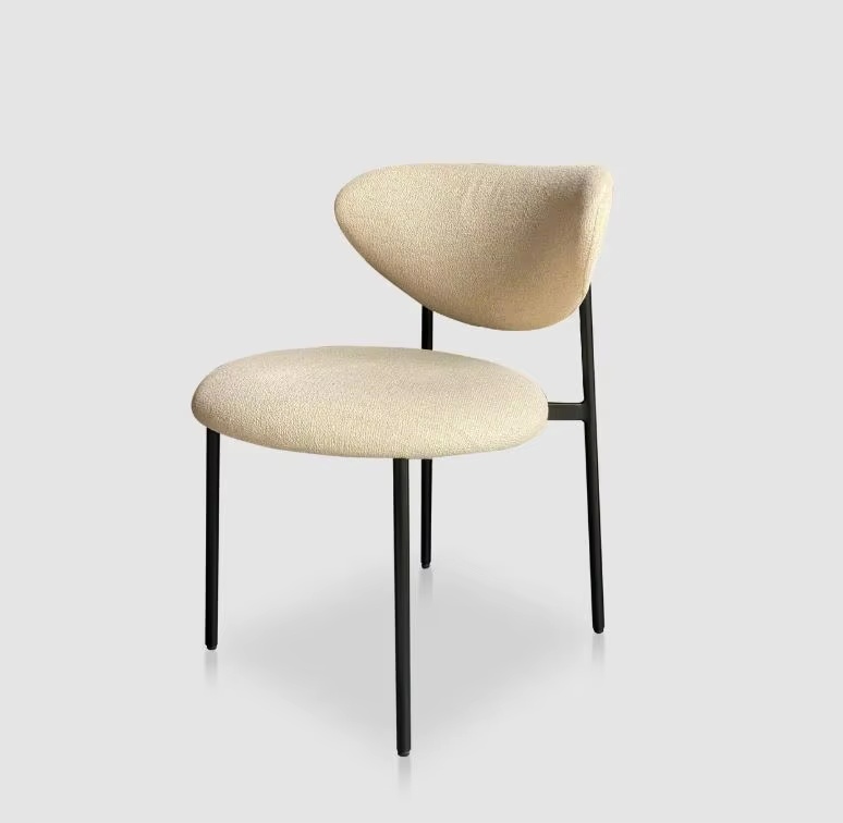 Manufactured in Vietnam, this modern minimalist dining chair is designed for importers and project buyers sourcing contemporary seating for dining rooms and hospitality interiors. It features matte black powder-coated iron legs for stability, combined with foam seat and back cushioning and polyester performance upholstery to support comfortable everyday use. Suitable for wholesale supply and contract furnishing, with OEM/ODM cooperation welcomed for large-volume sourcing programs.