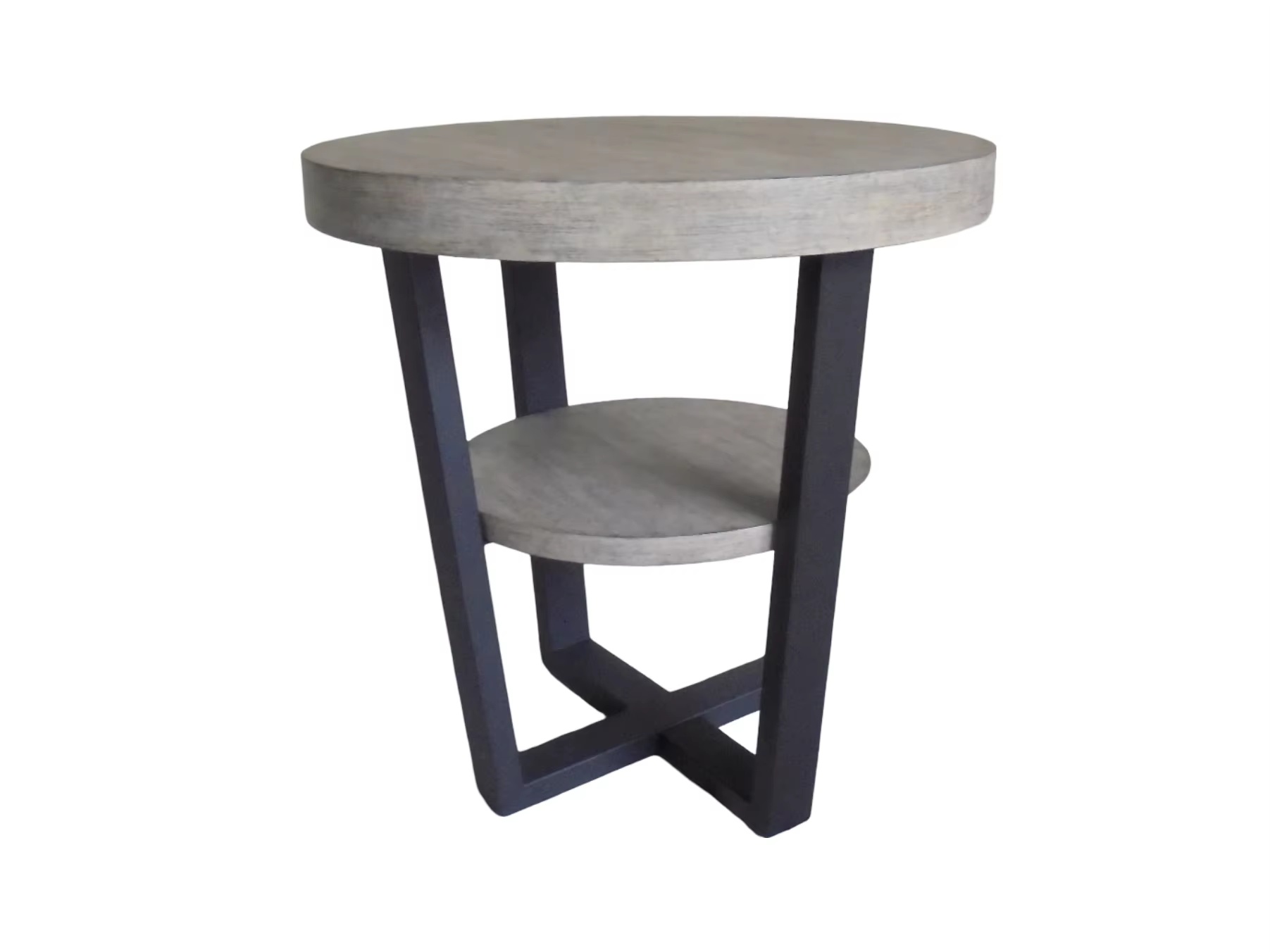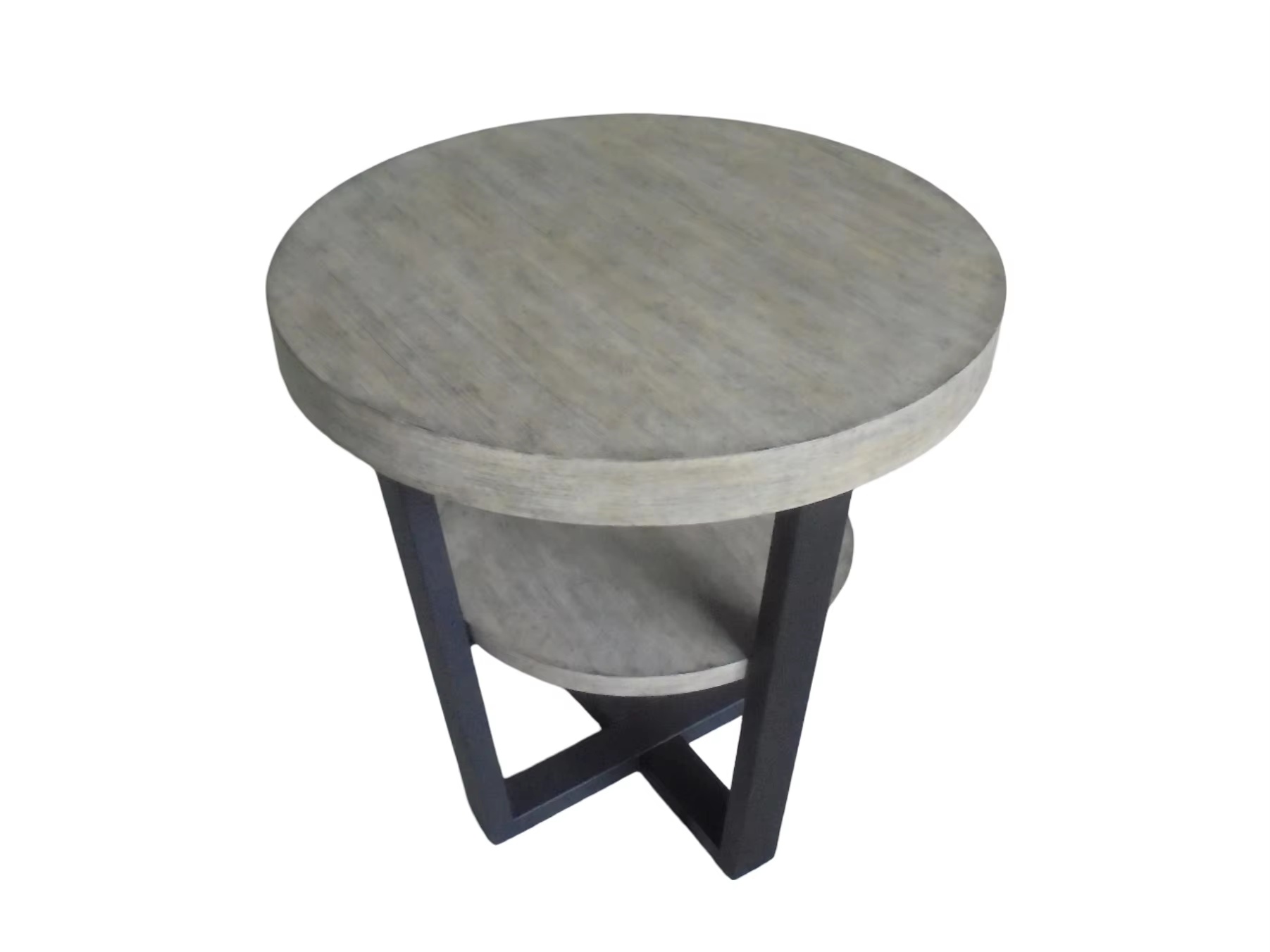 A compact, contemporary round end table featuring a PB wood tabletop with a sturdy metal frame and a practical lower shelf for light storage or display. Manufactured in Vietnam, this piece is designed for stable daily use and easy cleaning in living rooms, bedrooms, hotels, apartments, and office lounge areas—ideal for international buyers sourcing modern small furniture for wholesale and export programs.