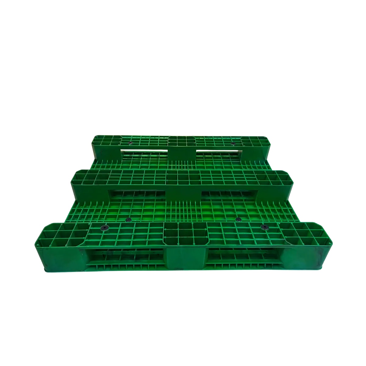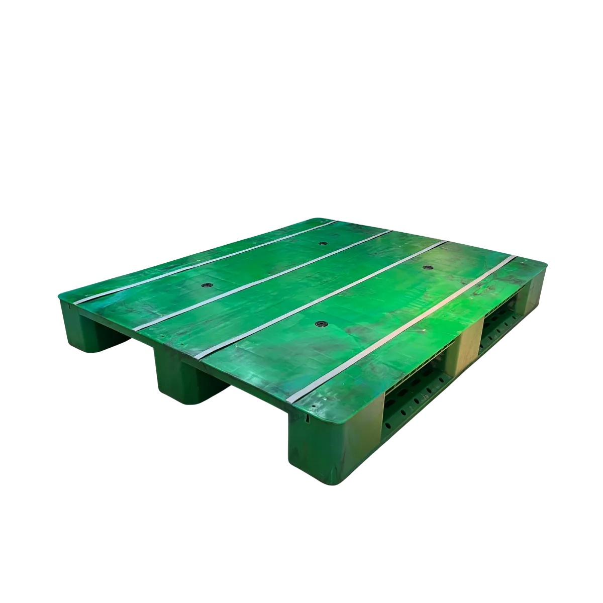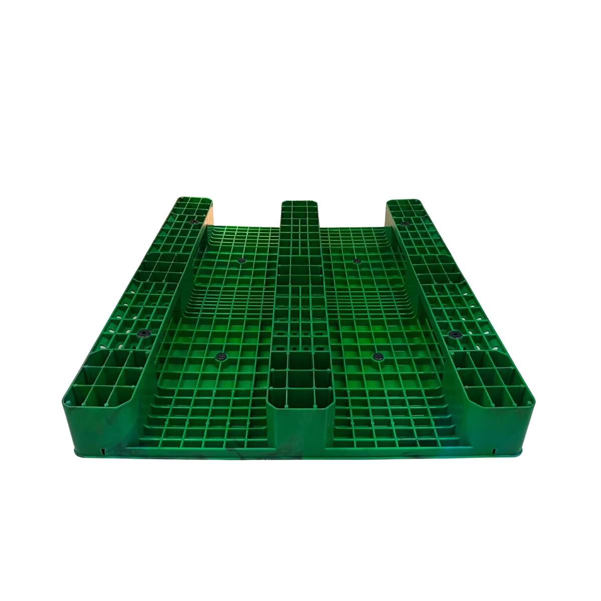 A monolithic plastic pallet built for high-load logistics and racking use, with a closed surface for easier sanitation and multiple handling compatibility (hand pallet truck, forklift, stacker); supplied for Vietnam-based sourcing to serve international warehousing and manufacturing needs.