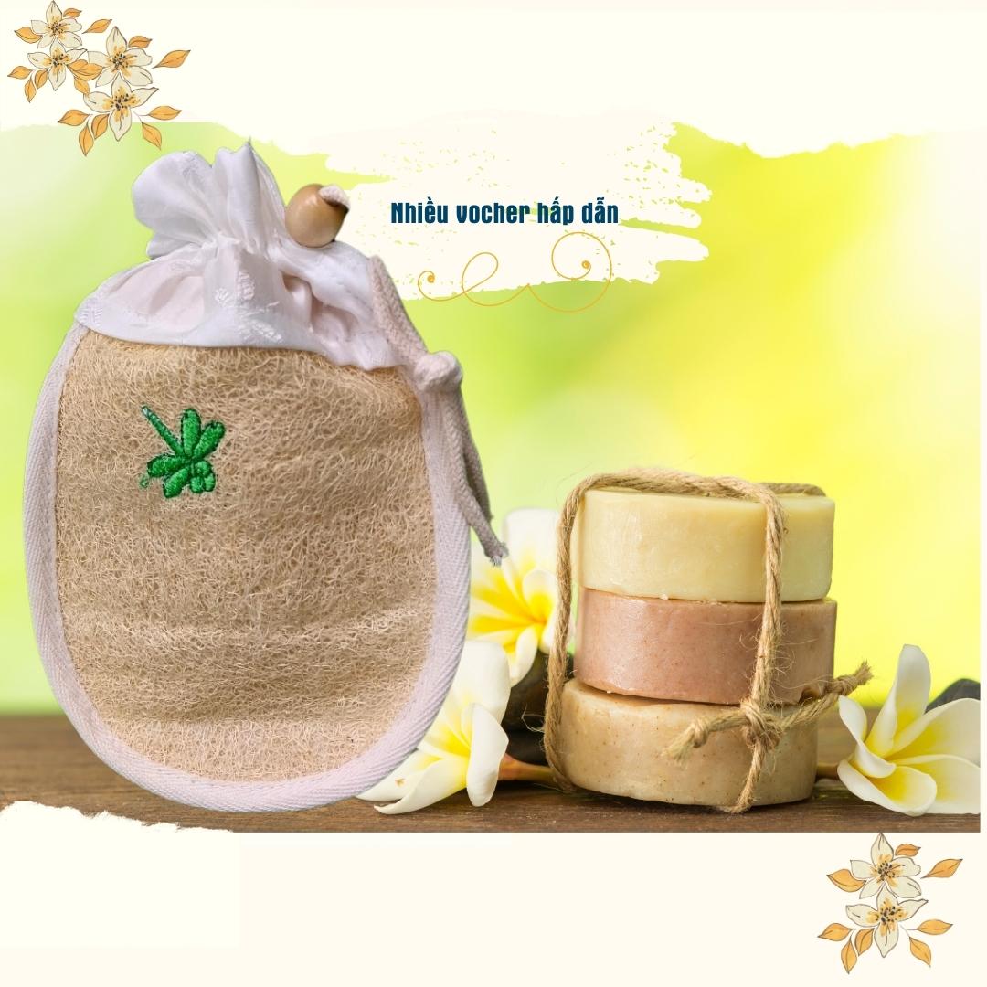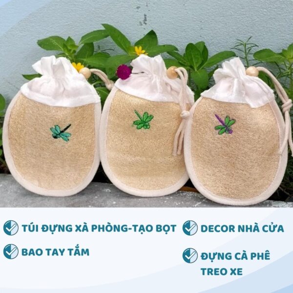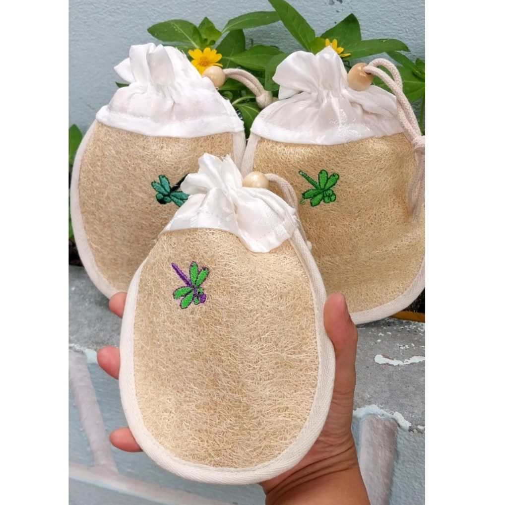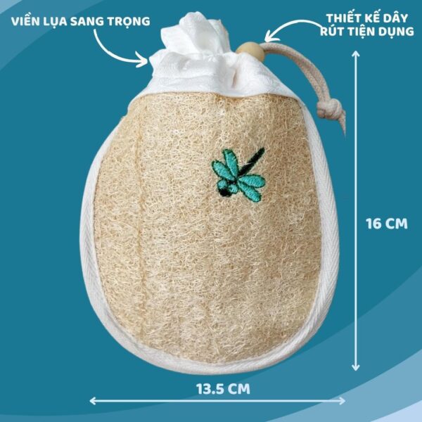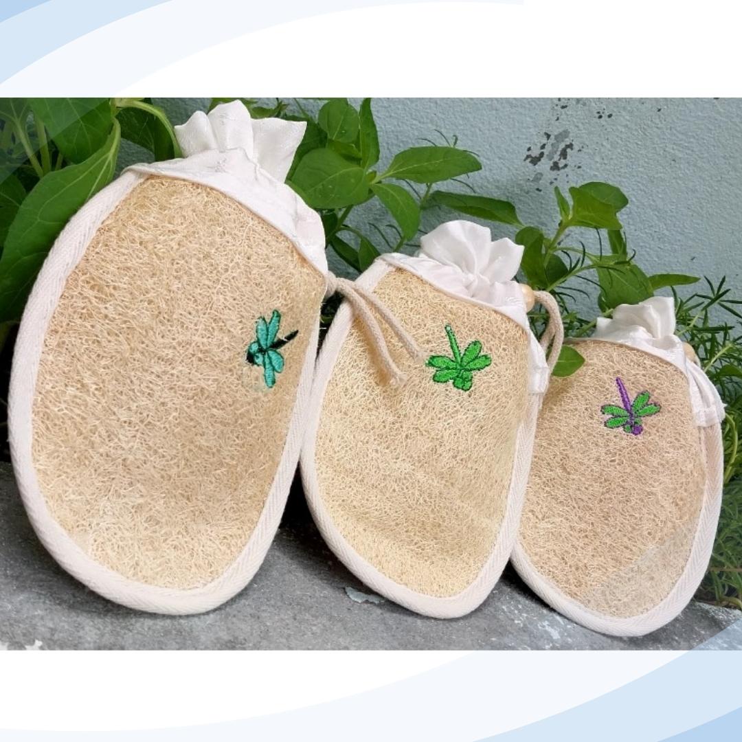 Multi-Purpose Loofah Soap Foaming Bath Mitt Bag (Cotton Trim, Hand-Dyed Silk Flap, Embroidered Detail)