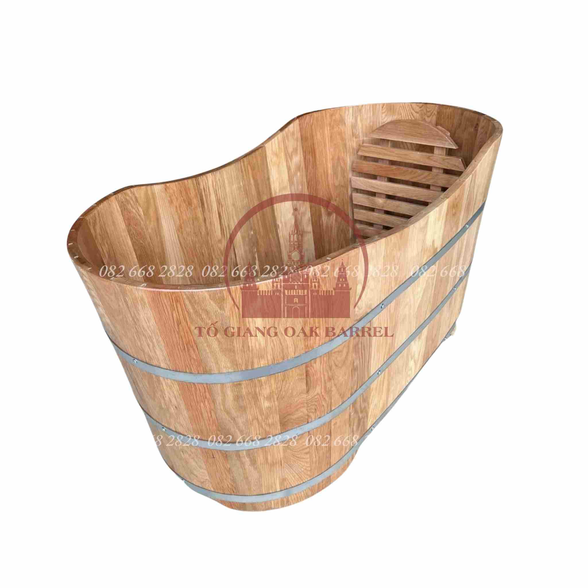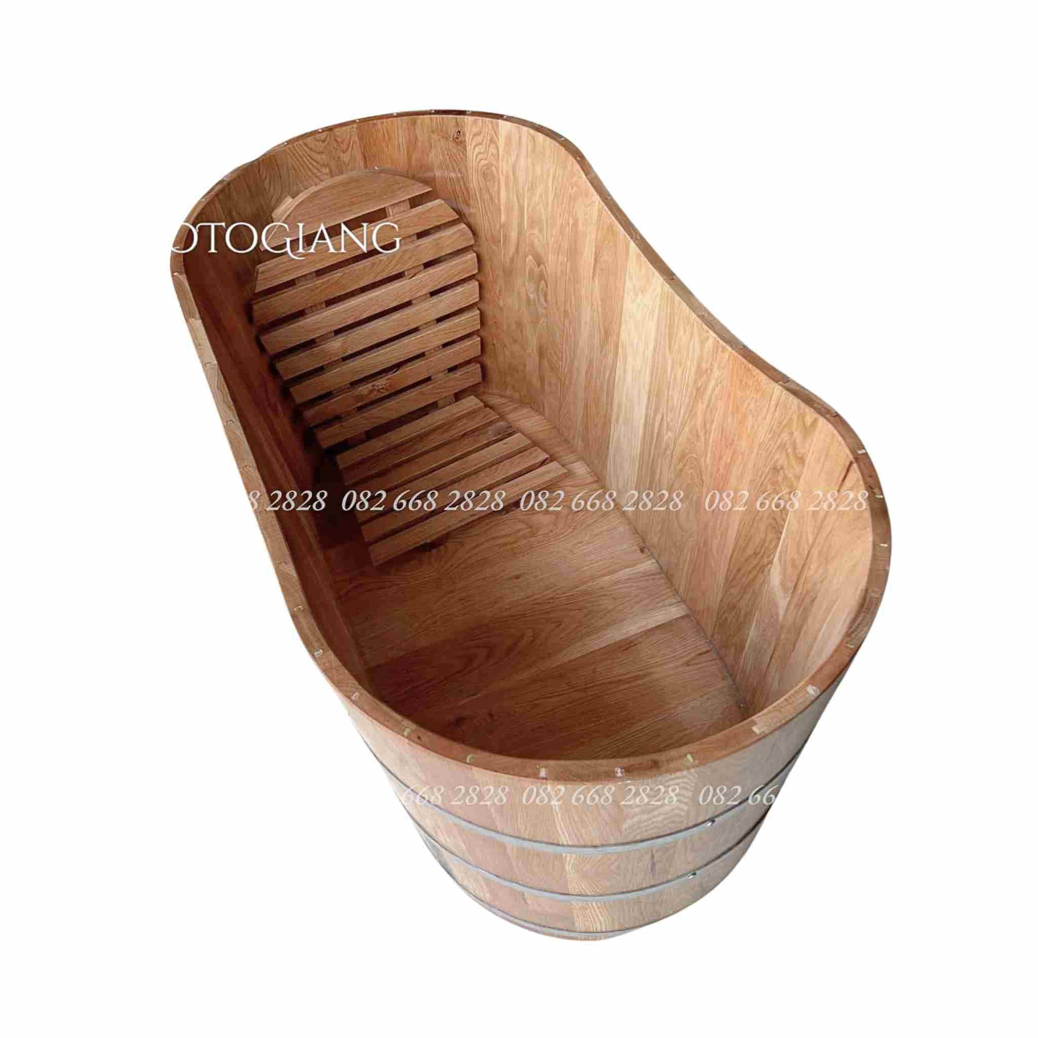 An oak bathtub designed for home bathrooms, spa rooms, and wellness projects—positioned for B2B buyers who source natural-material fixtures from Vietnam. The supplier mentions made-to-order sizing and bulk-order discounts, supporting project procurement and repeat orders.