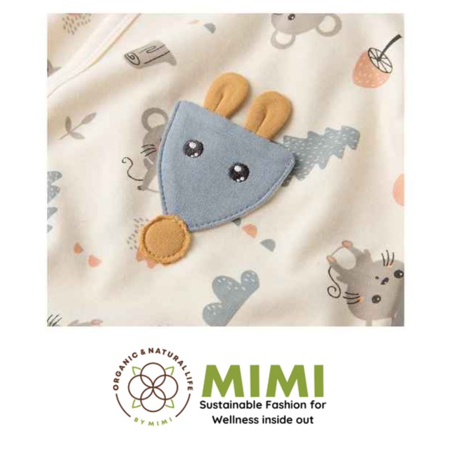 Made in Hanoi, Vietnam, this super-cute unisex baby romper features a soft knitted organic cotton/spandex fabric with snap-button closure and an adorable animal-themed print in ivory, offered with OEM/ODM service for international importers, distributors, and babywear brands sourcing reliable Vietnam-made infant apparel.