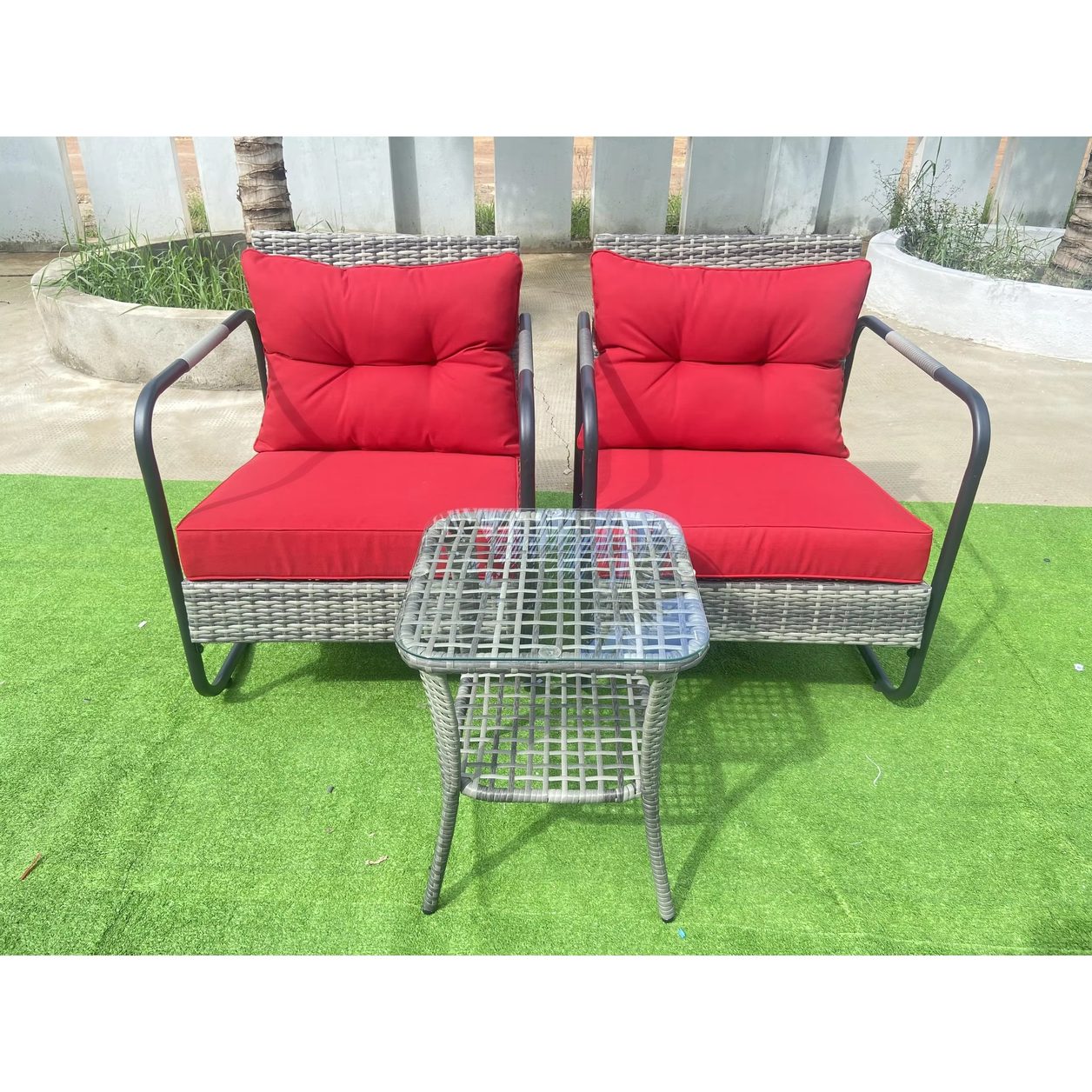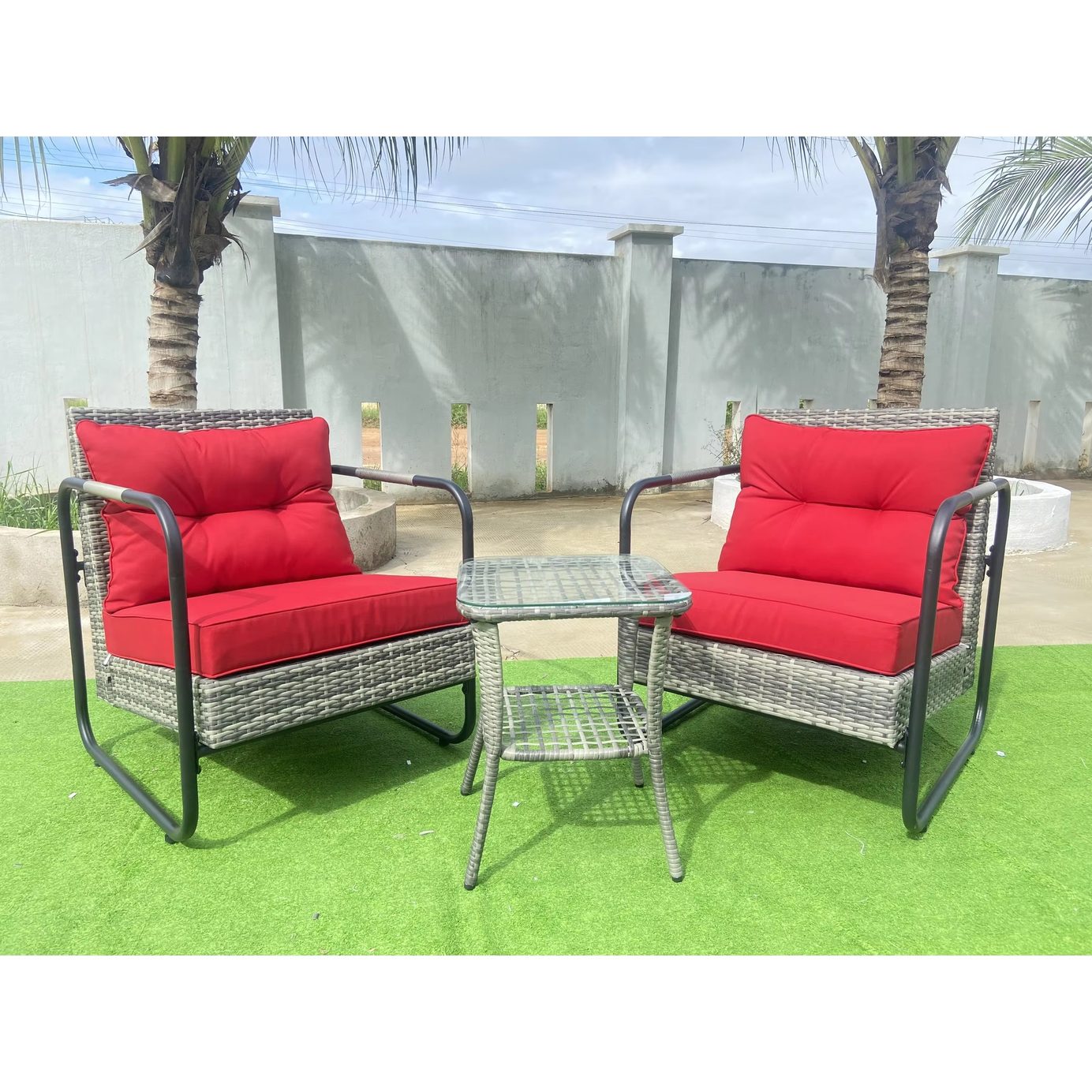 Product Dimensions: Includes 2 Glider Chairs + 1 Square Glass-Top Side Table (Exact Dimensions Not Specified)