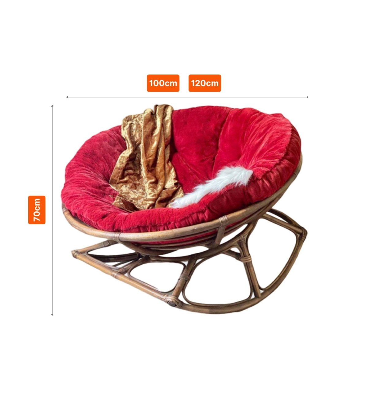Papasan Rocking Chair (Natural Rattan, Cushion Included, Ø100/Ø120cm)
