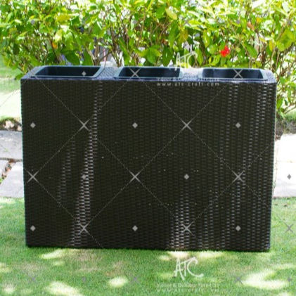 Model RAPL-006 is a long rectangular outdoor planter designed for hotels, apartments, villas, and landscape projects, featuring a modern woven rattan/wicker look with an easy-clean surface and multi-purpose use for greenery partitions and patio styling; size 100 x 30 x 70 cm, optional color choices, mail-pack ready, and manufactured in Ho Chi Minh City, Vietnam—ideal for international importers sourcing Vietnam-made PE rattan planters for outdoor furniture and garden décor supply programs.