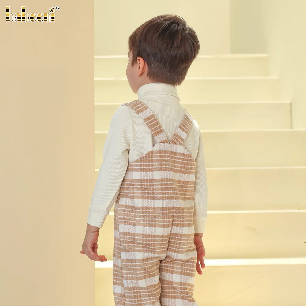 The Plaid Wool Longall Set BC1340 is a premium cold-season outfit developed for international sourcing, featuring a classic plaid wool longall highlighted by a detachable hand-smocked chest panel with intricate French knot hand embroidery, completed with covered buttons for an elevated, heritage-inspired look, and paired with a soft ribbed knit turtleneck pullover to ensure warmth and comfort; carefully manufactured in Hanoi, Vietnam by BABEENI’s dedicated artisans, this set is supplied under ODM service with refined hand-embroidery techniques, making it suitable for high-end fall–winter collections and global wholesale programs.