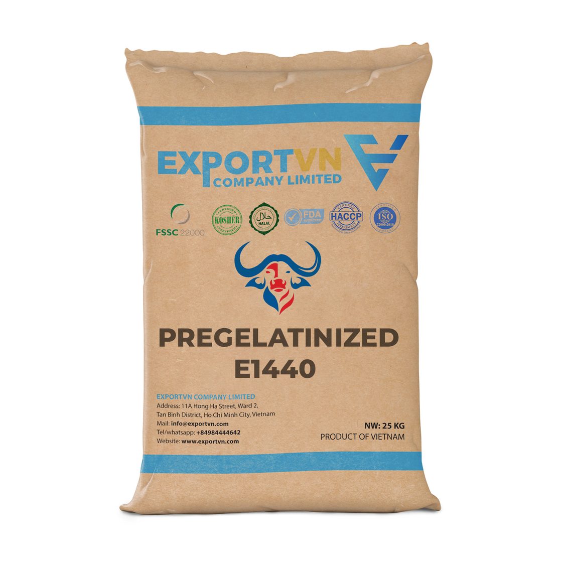 Pregelatinized Modified Starch E1440 is a food-grade functional starch designed for instant viscosity development and process efficiency. Manufactured in Vietnam for industrial and export supply, it is pregelatinized to disperse and thicken rapidly—often without intensive cooking—supporting stable texture and consistent mouthfeel in dry mixes and convenience foods. It is suitable for applications such as instant soups, sauces, seasonings, snack coatings, bakery premixes, and other formulated foods where quick hydration and reliable thickening performance are required.