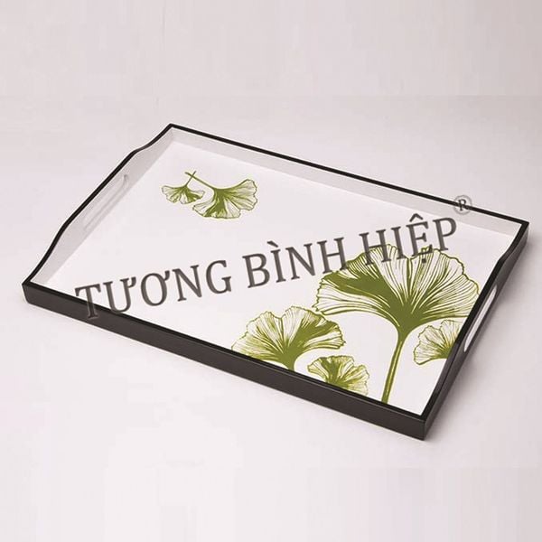 A Vietnam-made lacquer tray for home décor, hospitality use, and corporate gifting—suited to international sourcing programs. Produced from CARB P2 MDF board with multi-layer lacquer finishing and a refined printed pattern on the inner base, offering an elegant presentation piece with OEM/ODM customization potential.