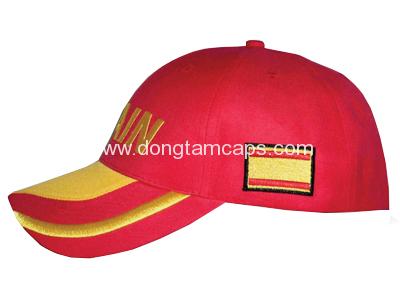 This baseball cap features a structured 6-panel crown with stitched eyelets for breathable, all-day wear. The two-tone design (red crown with a contrasting yellow curved brim and side accents) delivers strong visual impact—ideal for uniforms, events, fan items, and brand promotions. The front panel supports high-quality embroidery (sample “SPAIN” design), and colors, trims, and logo placement can be customized to your request. Manufactured in Vietnam and suitable for bulk sourcing, OEM/ODM production, and export.