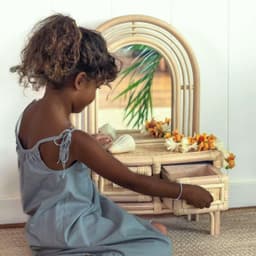 Made in Vietnam, this Modern Rattan Kids Dressing Table is designed as a floor vanity with a standing mirror and a practical drawer for small accessories. Using rattan with MDF components as provided, it delivers an eco-friendly and durable option for importers sourcing kids furniture for bedrooms and apartments, with mail-packing available for single-item shipments and customization support for wholesale orders.