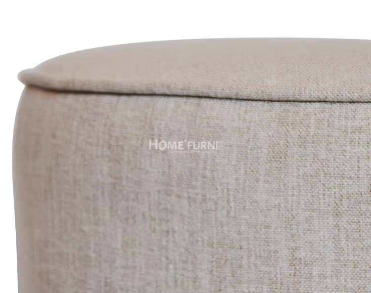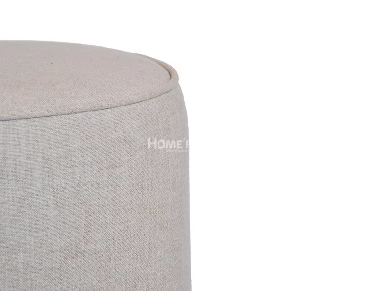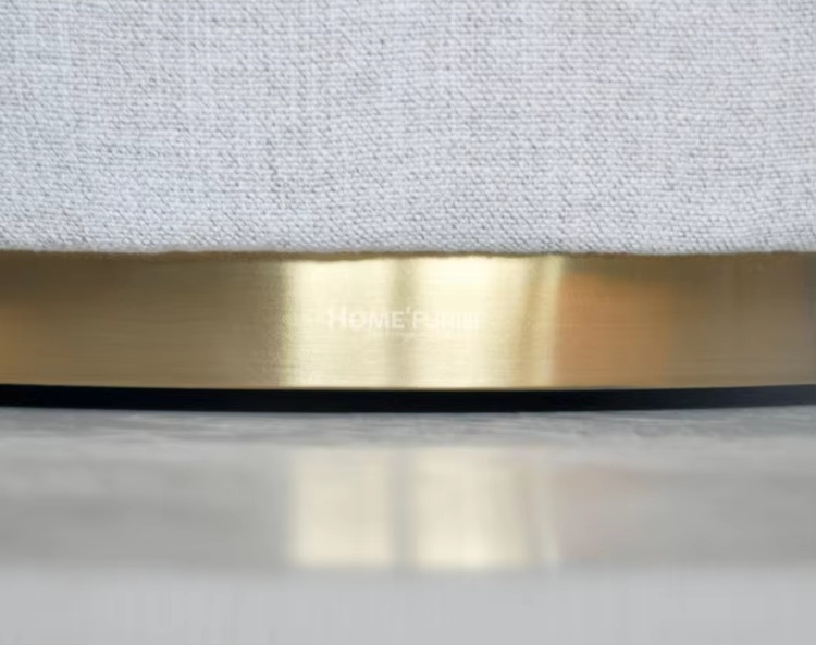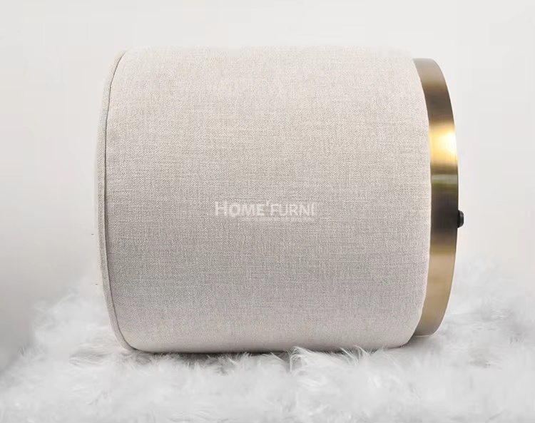 This modern round ottoman stool is manufactured in Vietnam for hospitality, office, and residential sourcing projects. Built with a pine + plywood internal frame and upholstered with fabric over high-density, fire-retardant foam, it delivers stable support and a clean contemporary look. The gold-plated stainless steel (201) leg/trim detail adds a premium accent, while OEM/ODM customization (logo, packaging, graphics) supports private-label and contract furniture orders.